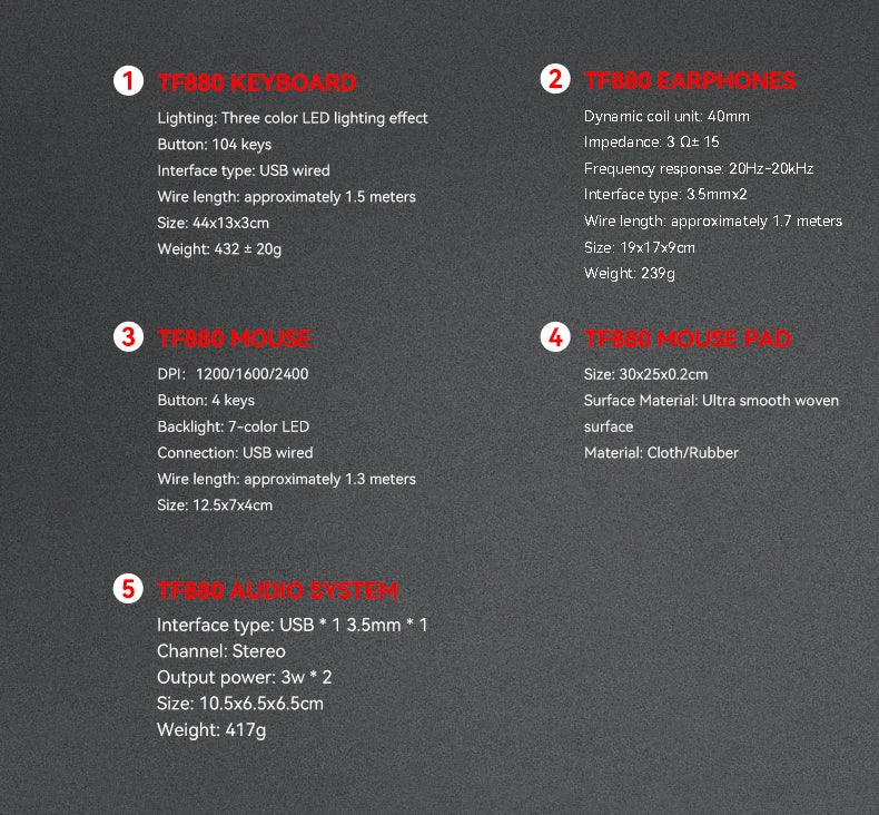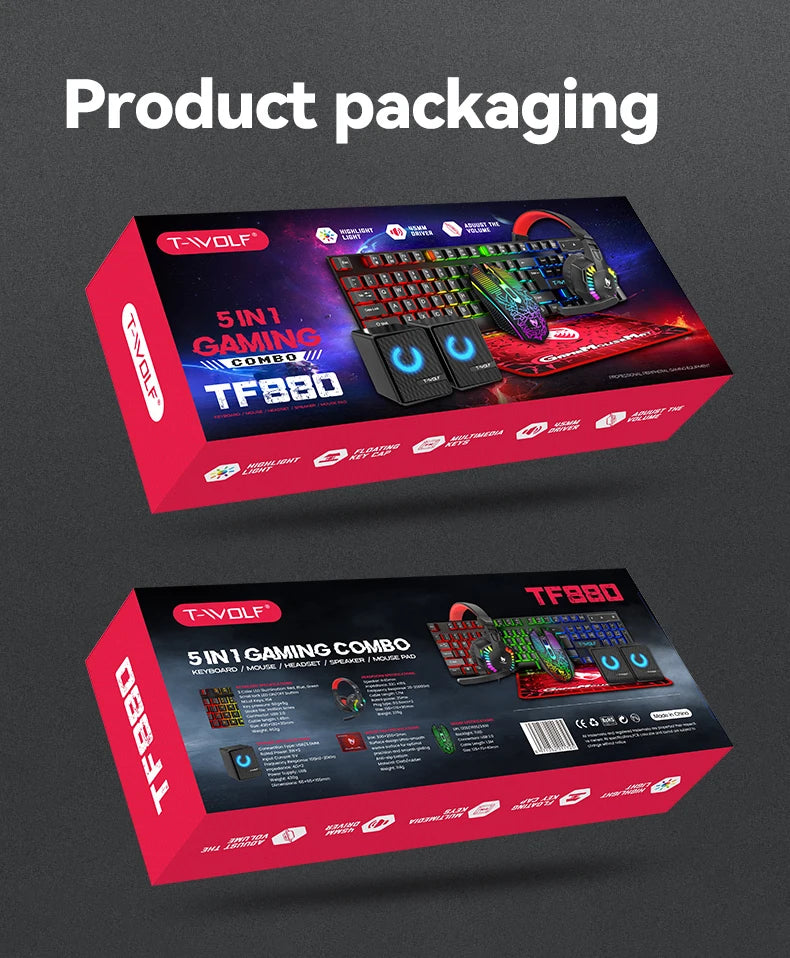 Five-piece Gaming Combo 104 Keys Keyboard 4-color Breathing Light Mouse 3.5mm Gaming Headset Gaming Speaker Anti-slip Mouse Pad