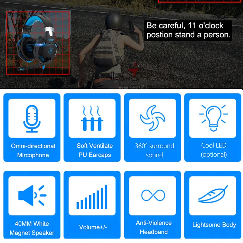 G2000 Gaming Headsets Big Headphones with Light Mic Stereo Earphones Deep Bass for PC Computer Gamer Laptop PS4 New X-BOX
