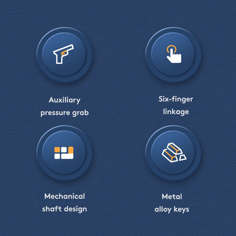 Feature: One-second burst: Six-finger linkage, moving while shooting, aiming and shooting, regardless of left or right. Mechanical black axis: no delay control, mechanical axis feel, highly sensitive and quick response. Metal buttons: Electroplated alloy buttons, easy to operate, smooth feel, comfortable ticking. Universal: Suitable for most smartphones (phones with a width of less than 11mm). Key position: With 4 output heads, easy to control and sensitive quick-load design. Groove design: prevent accidental touch, do not lock the screen, do not press the volume button. Non-slip and no damage to the machine: soft silicone pad, strong pressing will not lock the screen, stable and non-moving, and signal conduction is more sensitive. Specification: Product name: 6 finger button Item model number: G21 Product material: ABS+metal Product Quantity: 1 pair Key position: 4 output heads Applicable products: Smartphones (for Apple/Android mobile phones with a width of less than 11mm) Product package size: 65*65*38mm Product weight: 44g (including packaging) Note: Due to the different monitor and light effect, the actual color of the item might be slightly different from the color showed on the pictures. Thank you! Please allow 1-2cm measuring deviation due to manual measurement.