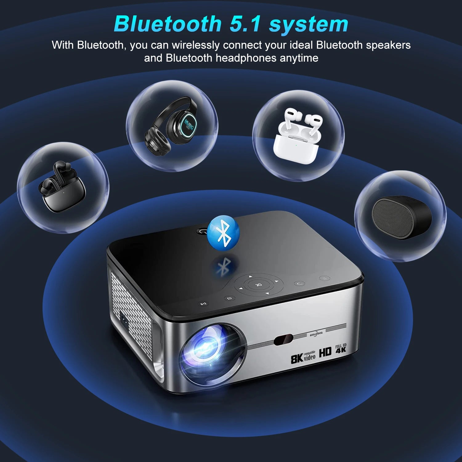 GOOJODOQ Full HD 1080P Projector 4K 8K 700ANSI 15500Lumens Android WiFi LED Video Movie Projector LED Home Theater Cinema Beamer