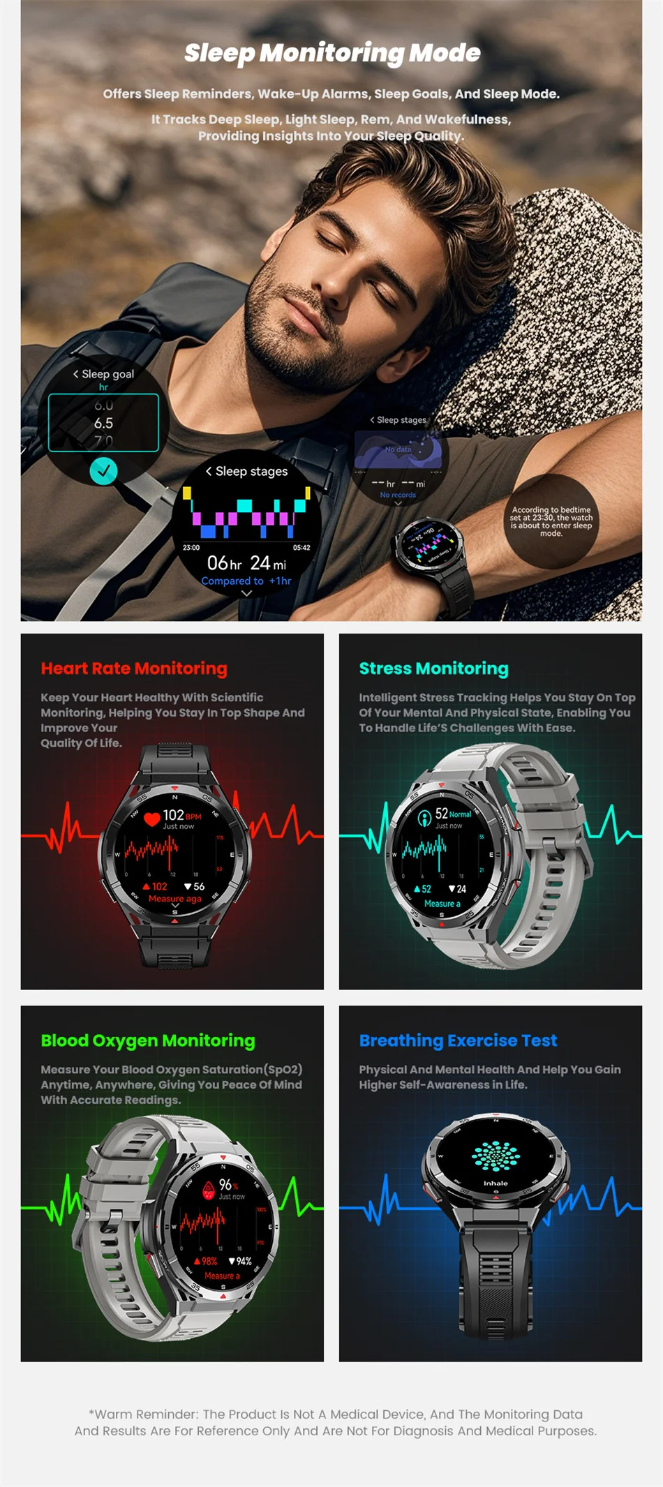 Watch Features: Health Monitor,Altimeter,Built-in GPS system,Compass,AMOLED HD Bluetooth Talk Smartwatch,100+ Sport Modes,10ATM waterproof