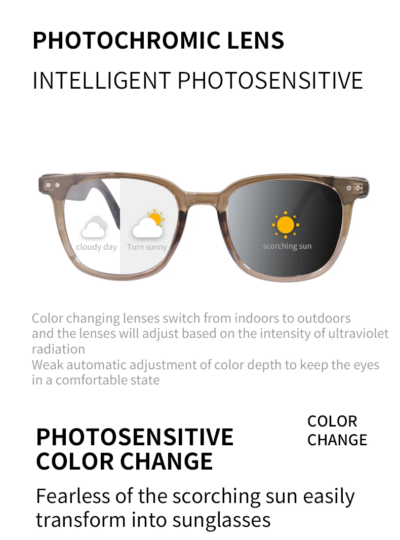 GS07 Smart glasses new color-changing lenses multifunctional sunglasses transparent anti-blue light eye protection for men women