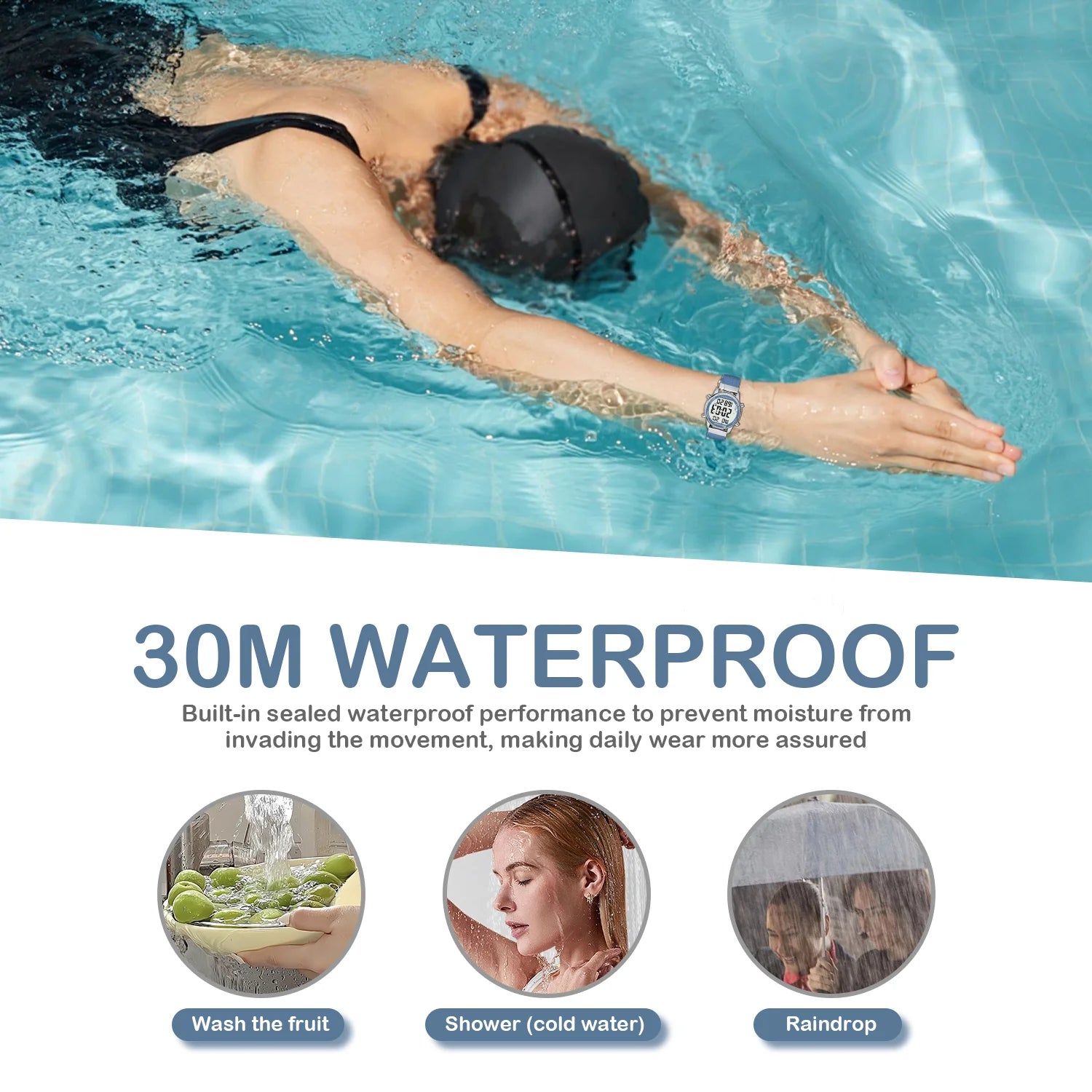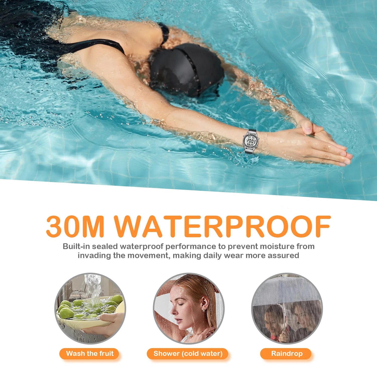 Feature: Stop Watch,Back Light,Water-Resistance,Alarm,swim