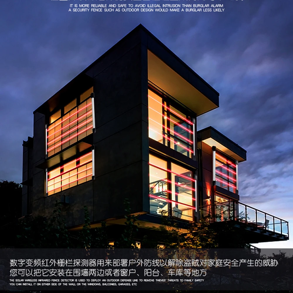Home Smart Wireless Home Security 4 Beams Alert Infrared Sensor Alarm system Anti-theft Motion for Wall Window Detector Alarm