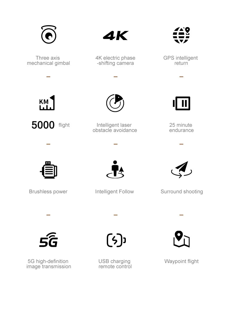 "Drone *1, remote control *1, laser obstacle avoidance head (optional) body battery *1, explosion-proof tool box *1, color box *1