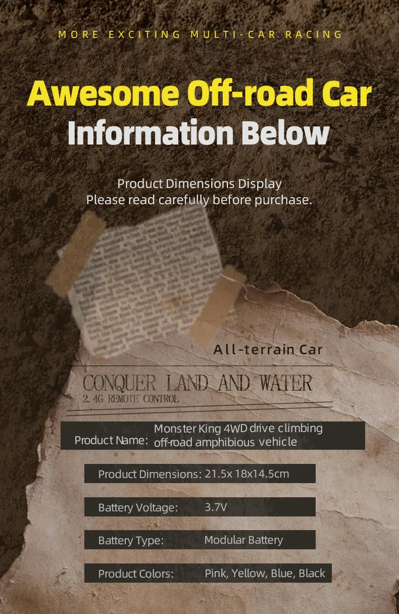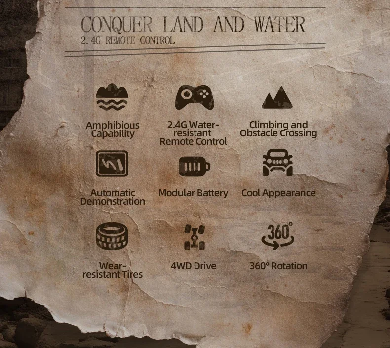 KBDFA Q215 Amphibious RC Car 2.4G 4WD Remote Control Truck Climbing Off Road Waterproof Armored Vehicles Kid Toys Gift