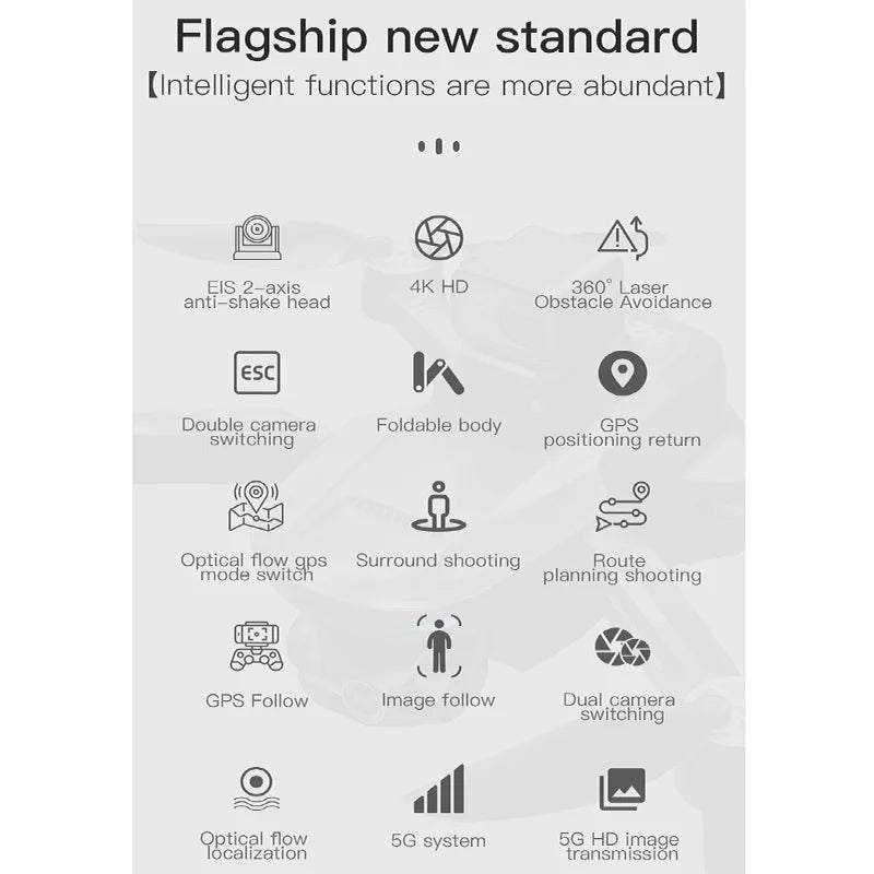1. 360° laser obstacle avoidance, 2-Axis gimbal, automatically detect obstacles within 20 meters, making flight safer. (obstacle avoidance device optional).
