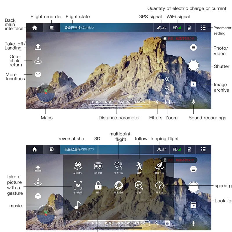 2. GPS one click return to takeoff point, low battery return, no signal return.