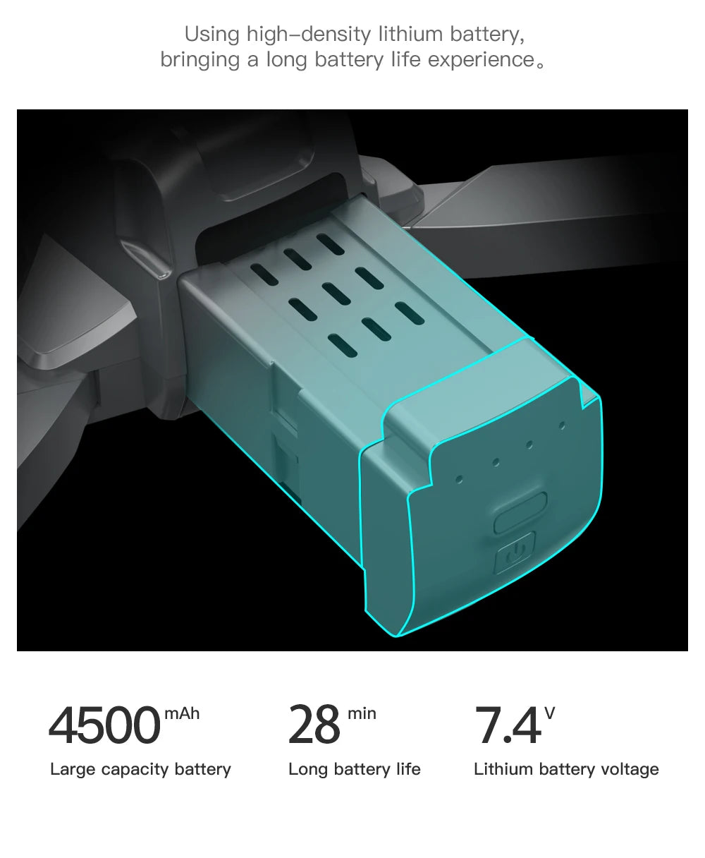 Drone Battery: 7.4V/4500mAh Lithium Battery Flight Time: Max 25 Minutes