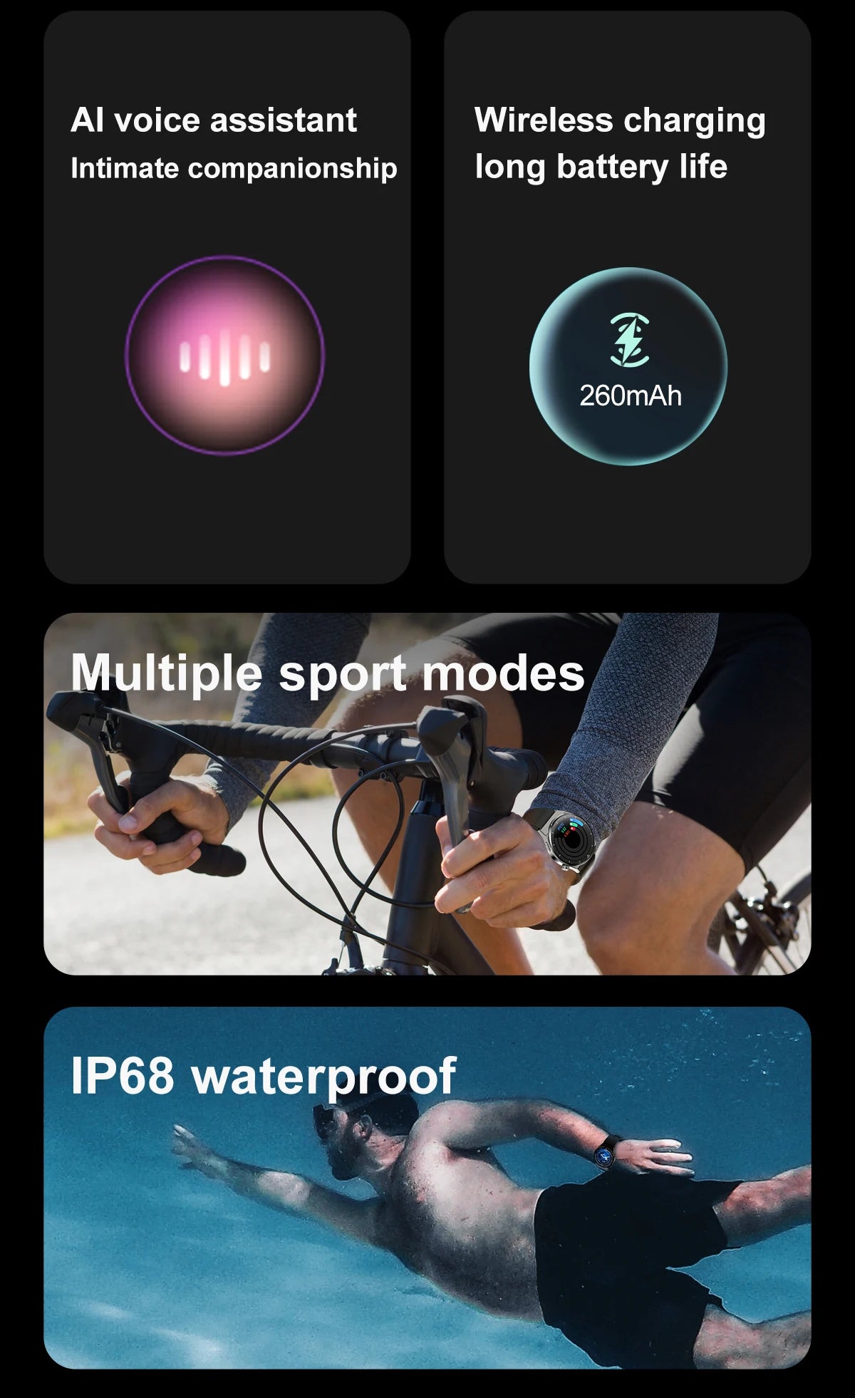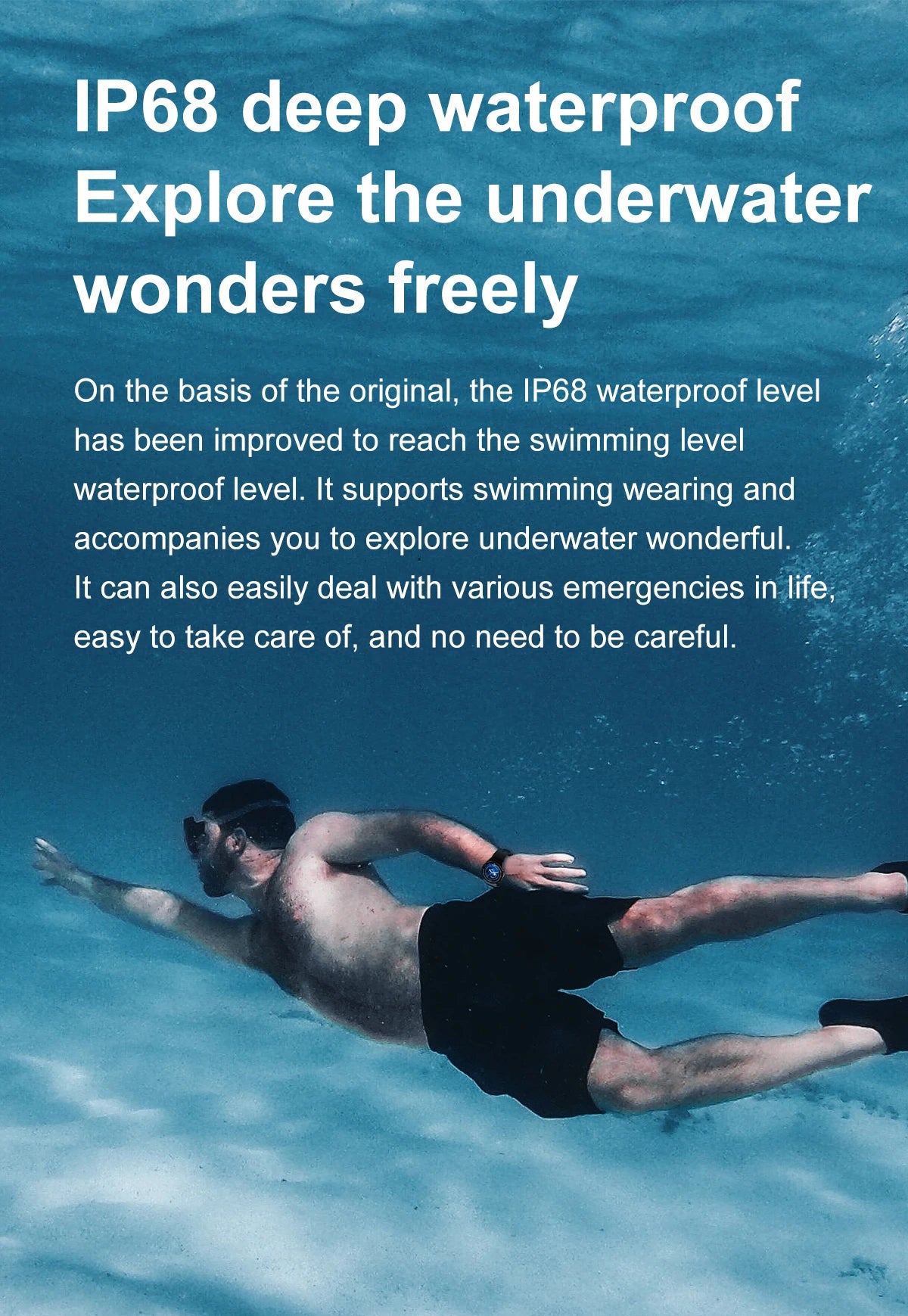 Sports: All-Day Activity Tracking( Steps, calories, distance ), IP68 waterproof, Exercise Modes, Stopwatch, Sports Data Report.