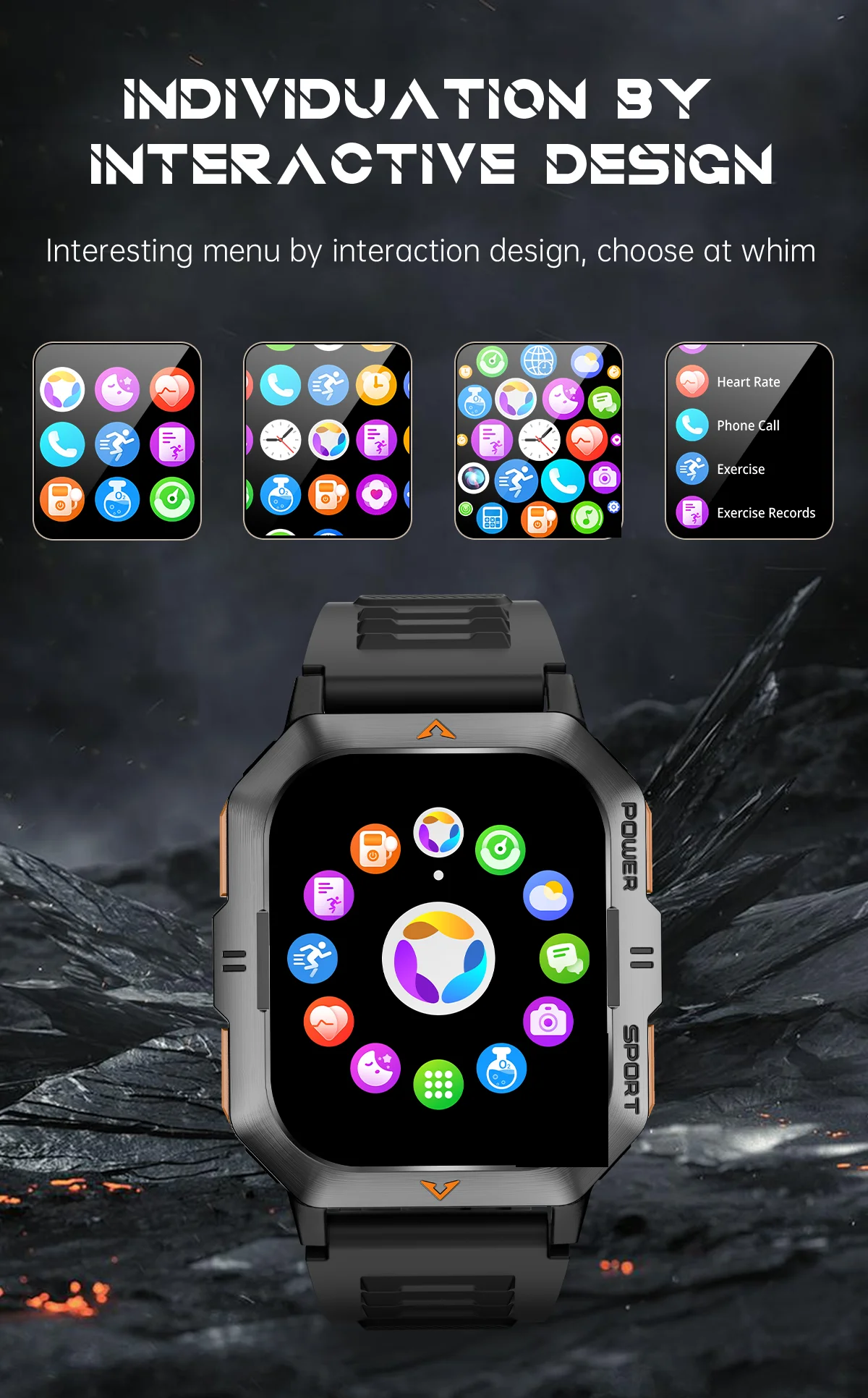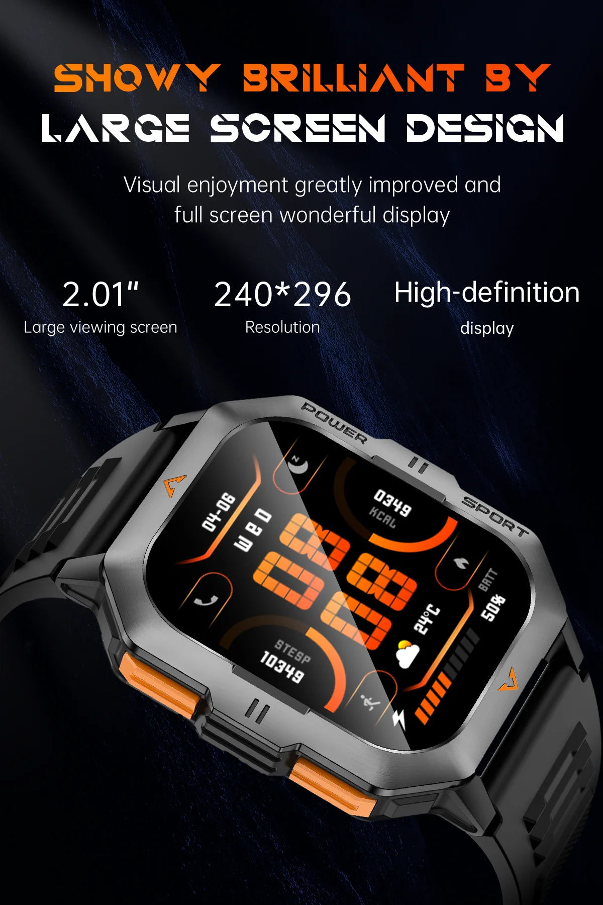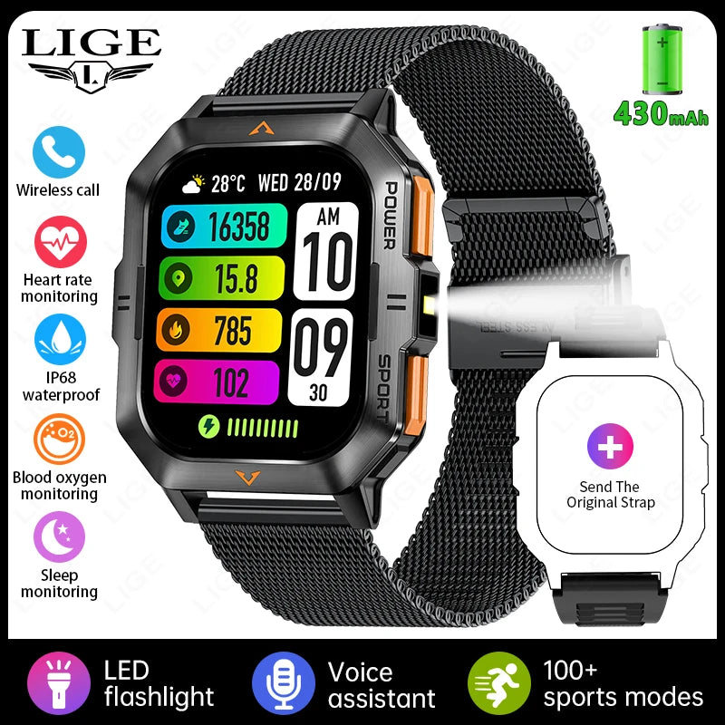 LIGE Outdoor Smart Watch For Men Women‘s Health 2.01’’ HD Screen 430mAh Battery LED Flashlight Waterproof Sports Smartwatches