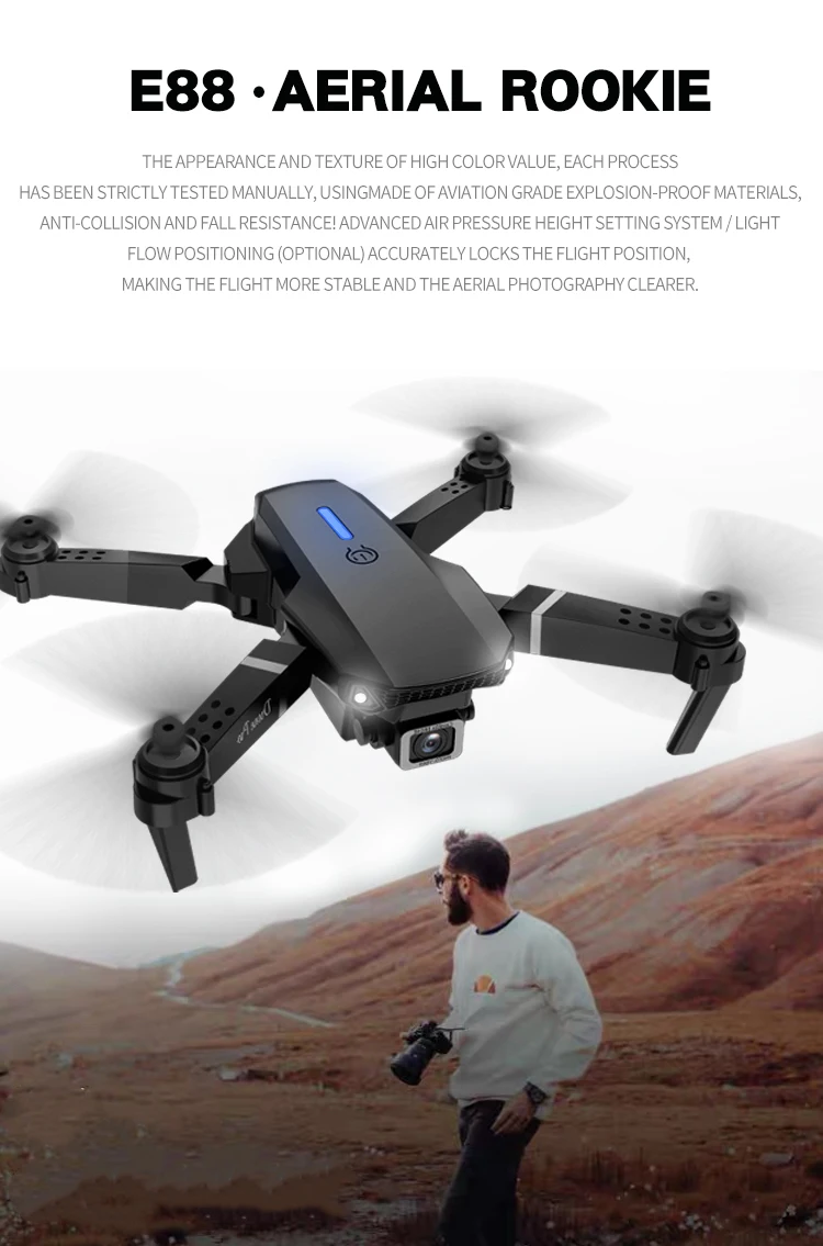 MHD E88 Dual Camera Drone Aerial Photography Professional High-definition Quadcopter Outdoor Flying Toy Beginner Drone Kids Gift