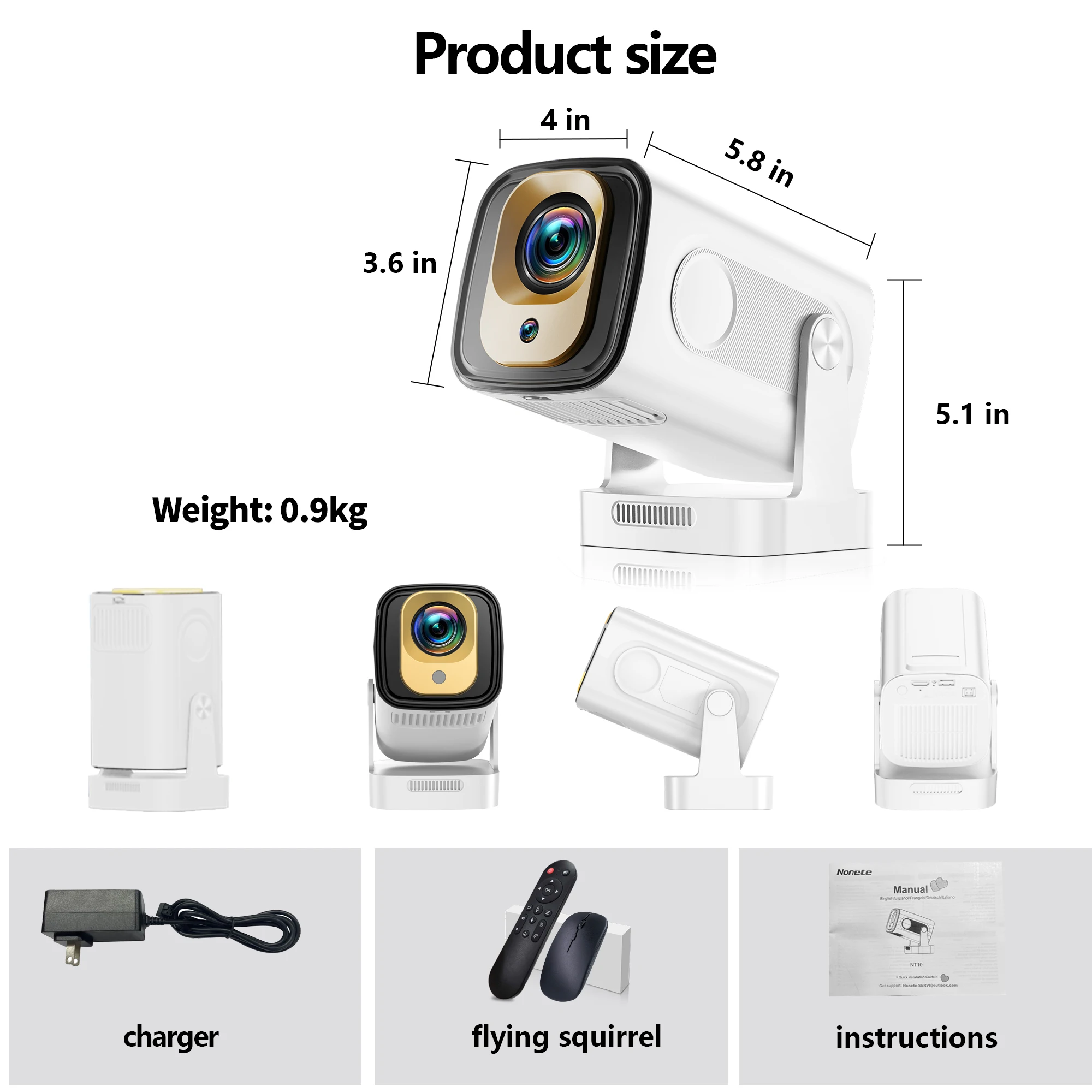 1080P FHD-Native & Support 4K & 1400 Lumen & 180°Degree Rotation & Auto keystone