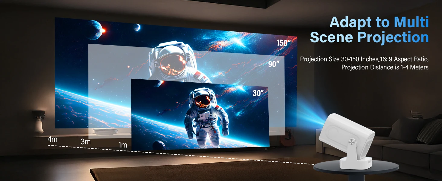 Projection Size 30-150 Inches, 16: 9 Aspect Ratio,Projection Distance is 1-4 Meters