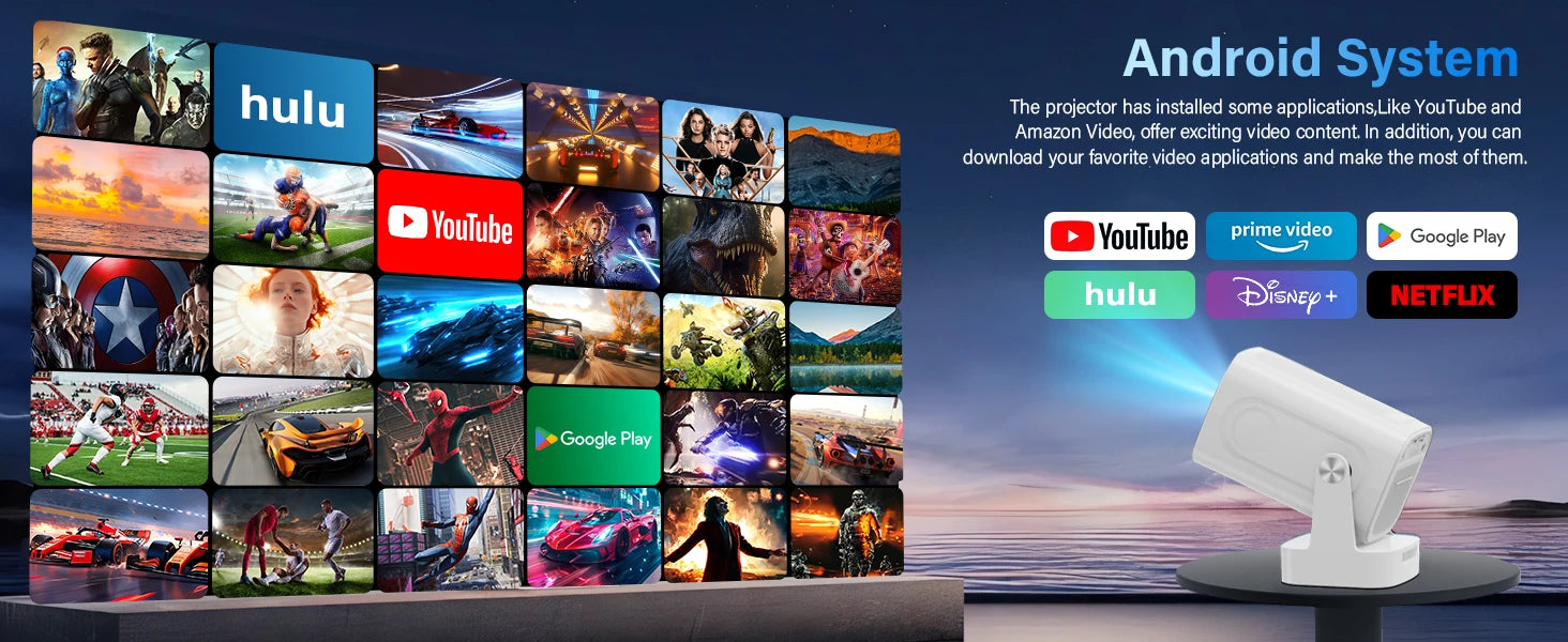 The projector has installed some applications, it can offer exciting video content. in addition, you can download your favorite video applications and make the most of them.