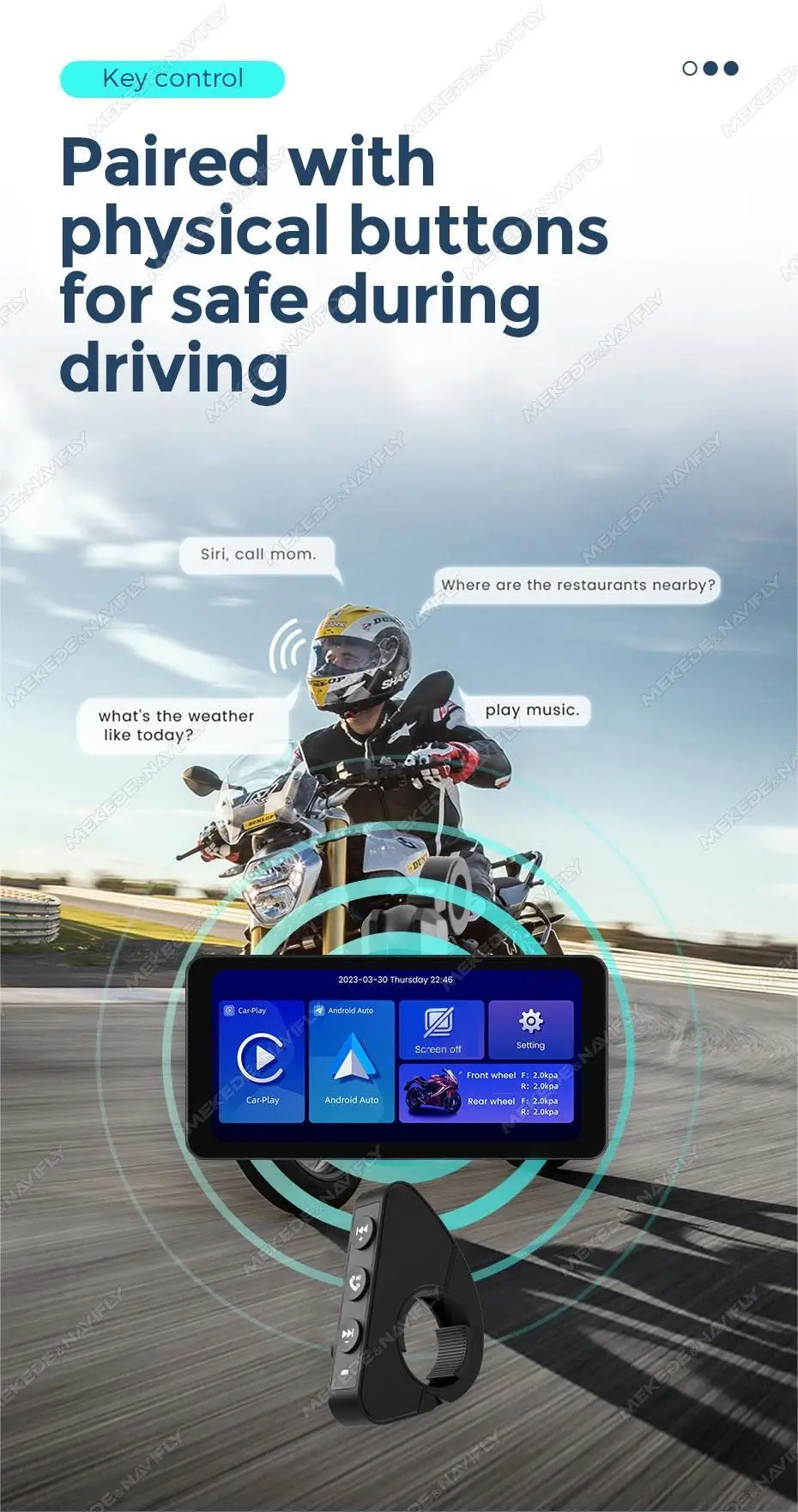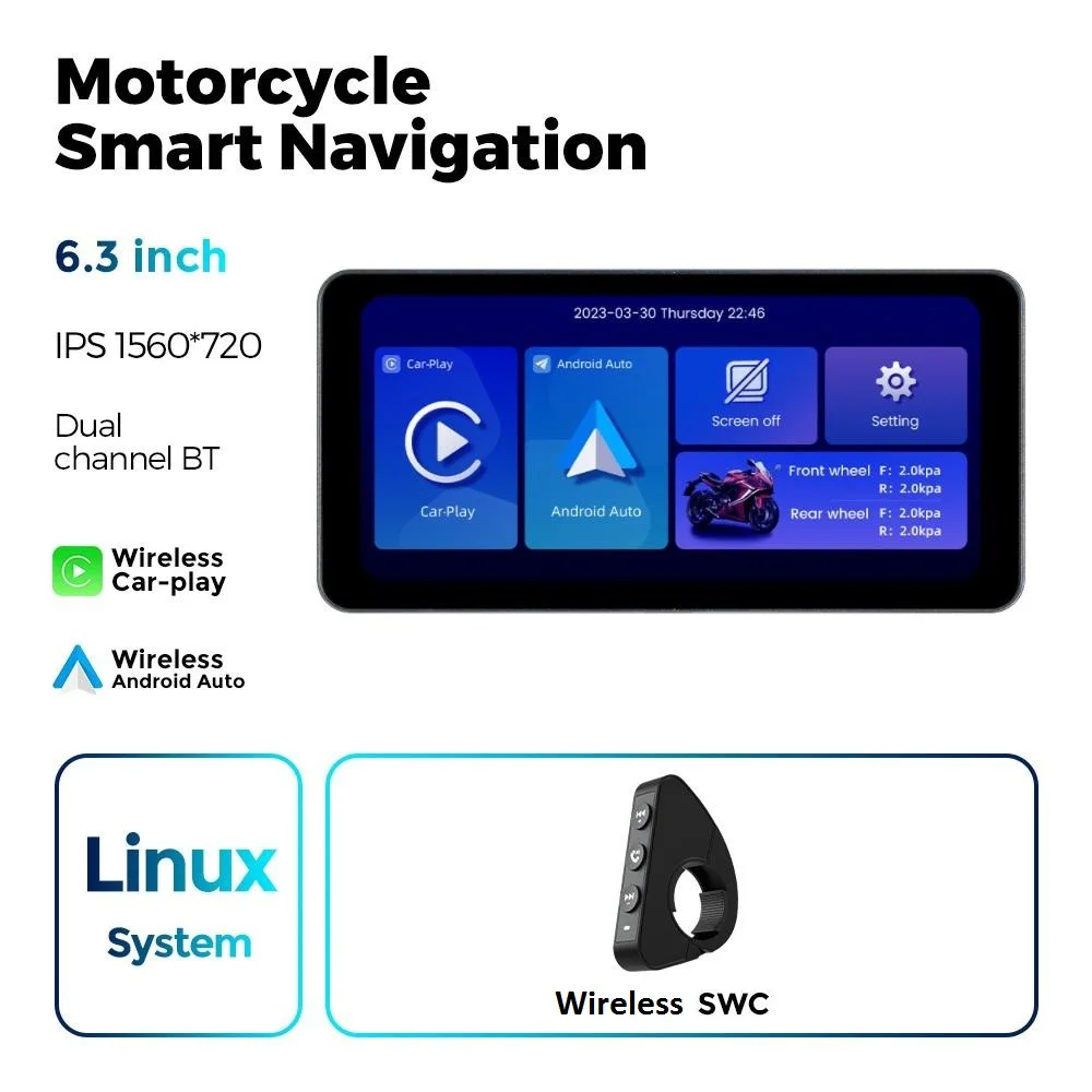 NEW 6.3inch Portable Screen Motorcycle Wireless Car-play Android Auto Smart Player GPS Navigation IPX7 TPMS IPS 1560*720 Dual BT