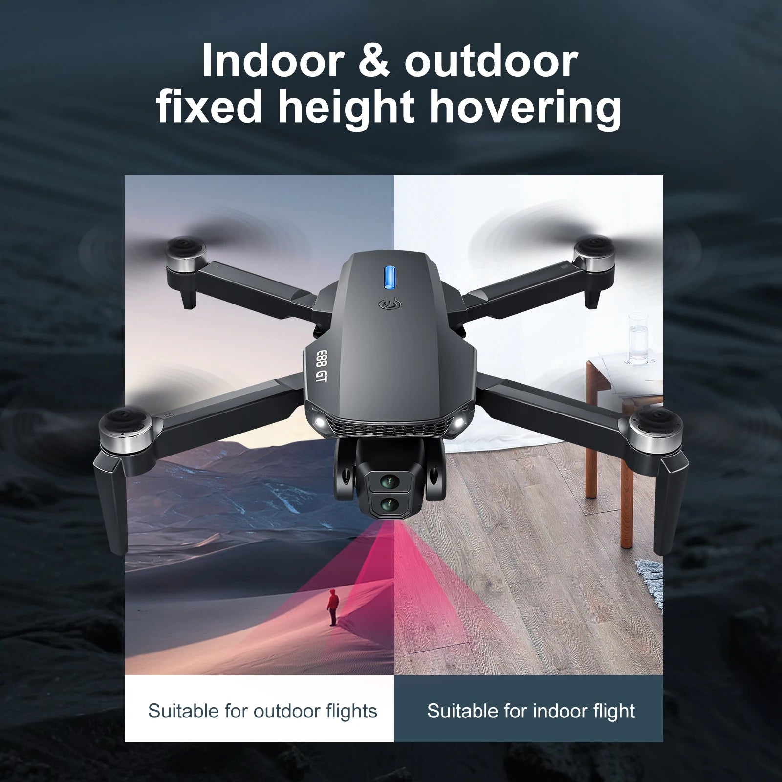 Experience premium aerial photography with the E88GT Drone – Your ultimate 4K HD Camera Drone for Beginners and Enthusiasts. Featuring a powerful brushless motor and advanced optical flow positioning technology, this drone ensures smooth, stable flights across various environments.