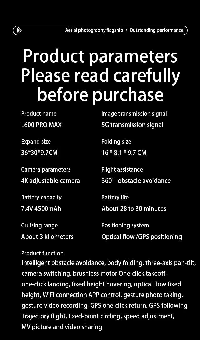 New L600-1 PRO MAX GPS Drone 5KM 4K Professional HD Dual Camera 360° Laser Obstacle Avoidance Brushless Quadcopter Toy Gift