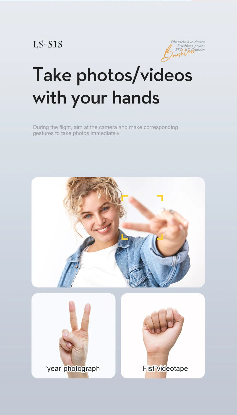 6. Hand gesture photography, optical flow positioning, brushless motor, ultra long endurance, obstacle avoidance head assembly, which can stop when encountering obstacles without colliding with them