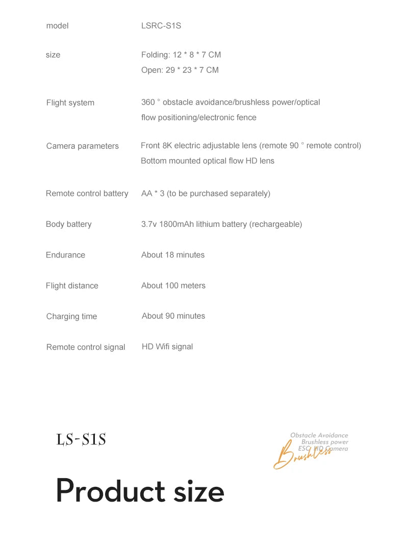 New S1S Mini Drone Profesional 8K HD Camera Obstacle Avoidance Aerial Photography Brushless Foldable Quadcopter