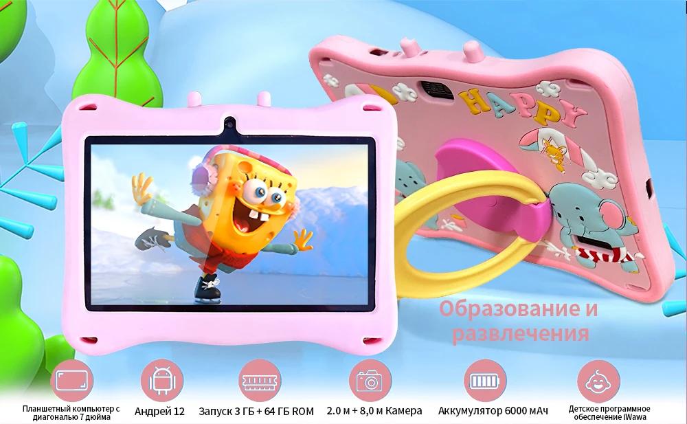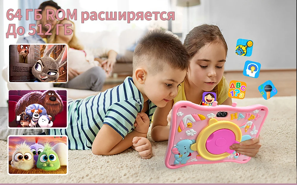 New Tablet 7.0 Inch Cartoon Pattern Kids Quad Core 4GB RAM 64GB ROM Android 13 Learning Education Games Tablets Children's Gifts