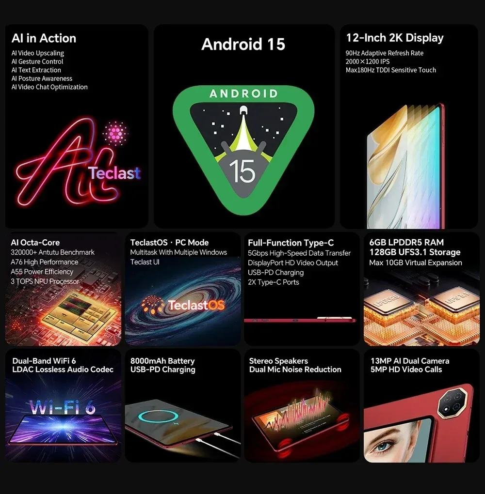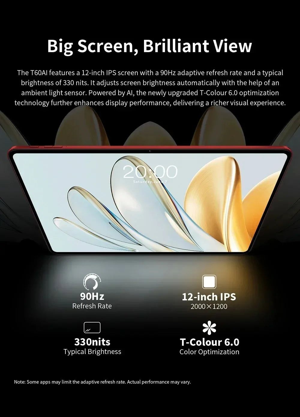 NEW Tablet Teclast T60 AI Allwinner A733 Octa-Core 12inch 2K HD TDDI Screen 6GB RAM 128GB ROM Android 15 WiFi6 8000mAh 13MP+5MP