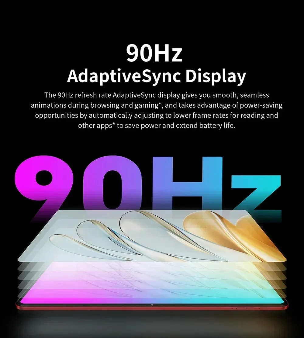 [12-Inch 90Hz Display] Immerse yourself in vibrant visuals with the 12-inch display featuring a 90Hz adaptive refresh rate, providing smoother transitions and reduced motion blur for media, gaming, and browsing.