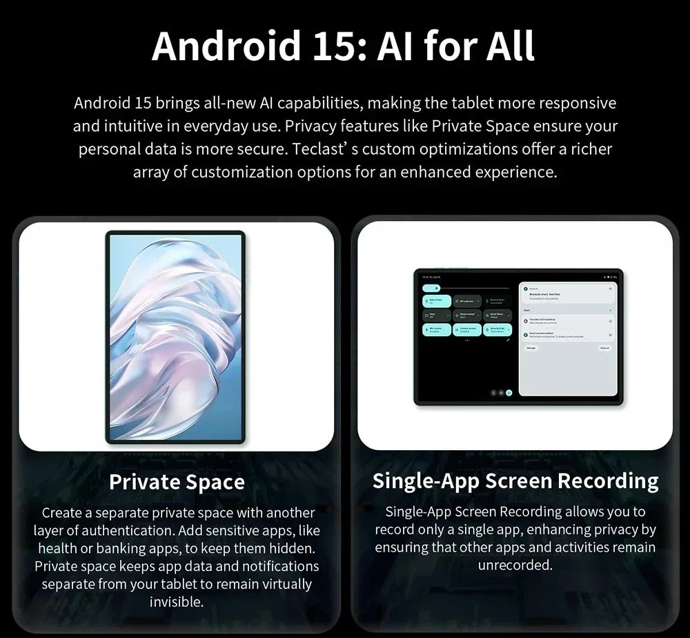 [Android with TeclastOS ] TeclastOS enhances the user experience with advanced features like PC Mode, multi-window support, and Single-App Screen Recording, making it perfect for productivity, entertainment, and everyday tasks.