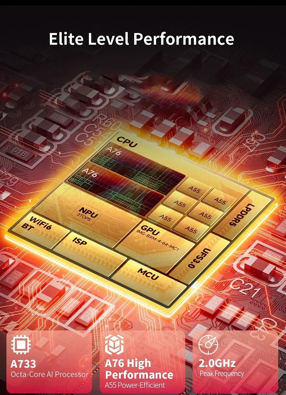 [Allwinner A733 Octa-Core] Equipped with the Allwinner A733 Octa-Core processor, the T60AI delivers smooth multitasking, fast response times, and energy-efficient performance for a seamless user experience.