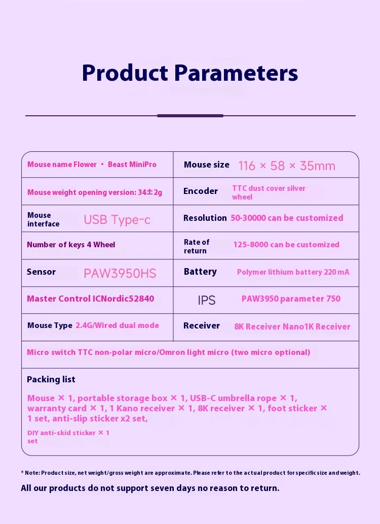 New WLMouse BEAST X MINI Pro Mouse Dual Mode Wireless Mouse Custom PAW3950 8000Hz Magnesium Alloy Gaming Mice FPS PC Accessories
