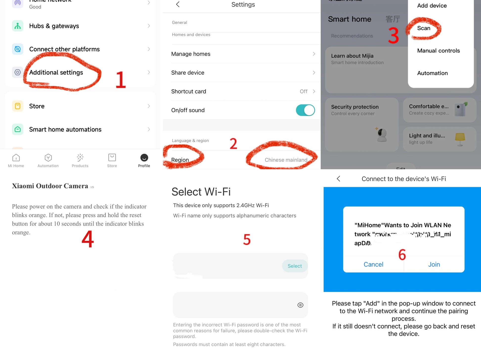 NOTE: This product version is for the China region. When adding cameras, please select the Chinese server in the Mijia settings.