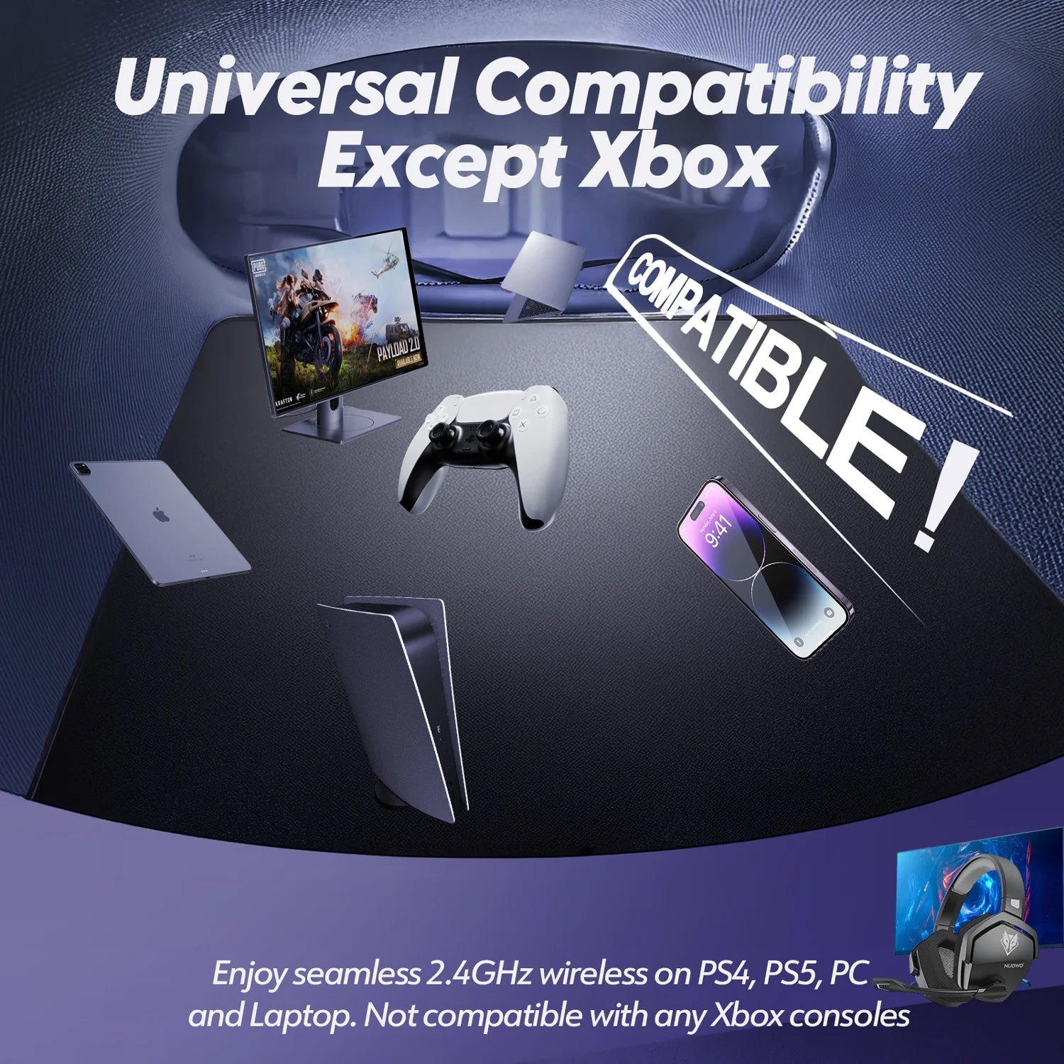 Effortless Wireless Gameplay - Transition from tangled cables to smooth wireless gaming. Leveraging a 2.4GHz connection through its USB dongle, this headset ensures consistent gameplay for PCs and many consoles. Note: Some consoles may not support this wireless feature.