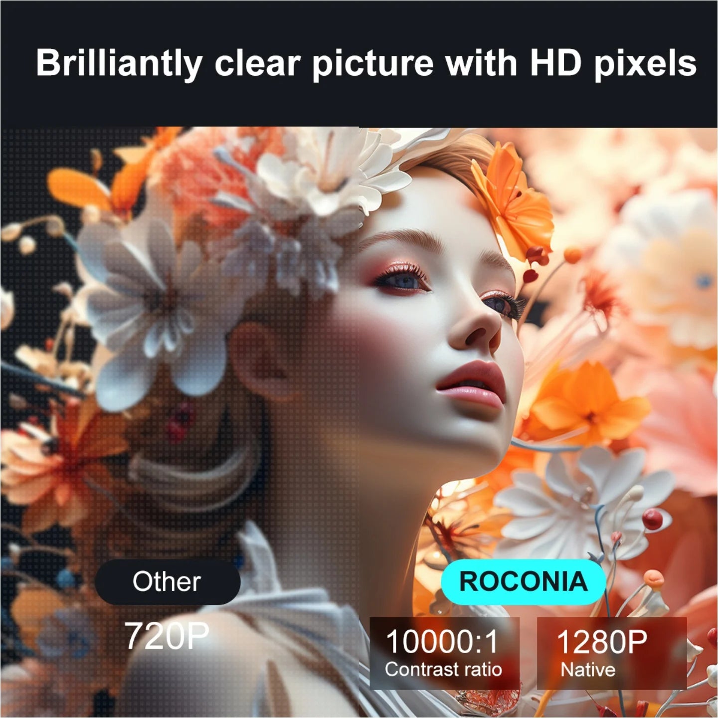 Easy to set up: once you've found the right angle, this portable smart projector will automatically adjust the image to show you the perfect picture; it supports focus adjustment, image scaling, keystone correction, projection mode adjustment in seconds. The size of the projection screen can be up to 200 inches (33 inches to 200 inches, 1-4.5 metres), offering an immersive cinematic experience.Crisp image: 6000 lumens, 1280P * 720P resolution, offering a cinema-quality image for home cinema systems (recommended for low-light environments).Smart entertainment: stream your favourite shows seamlessly, play games, train with your coach; do everything you love in just a few clicks and discover your must-have apps and streaming services. Compatible with Android and iPhone phones.High-quality 360-degree sound: Listen to the 360-degree sound of this small but powerful smart cinema; you'll be amazed by the high-quality sound from the speakers and bass amplifier.