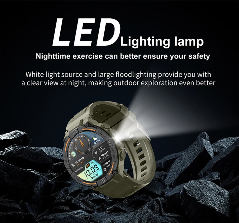 Outdoor Smart Watch with Flashlight Male Sports Fitness Waterproof Watch 24 Hours Heart Rate Monitor Bluetooth Call Smartwatch