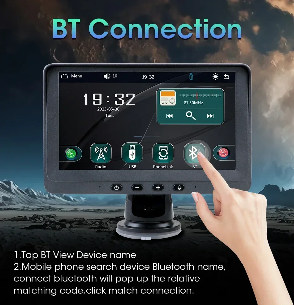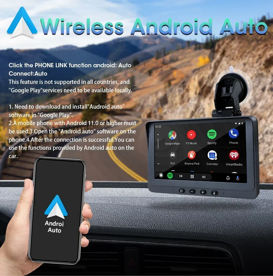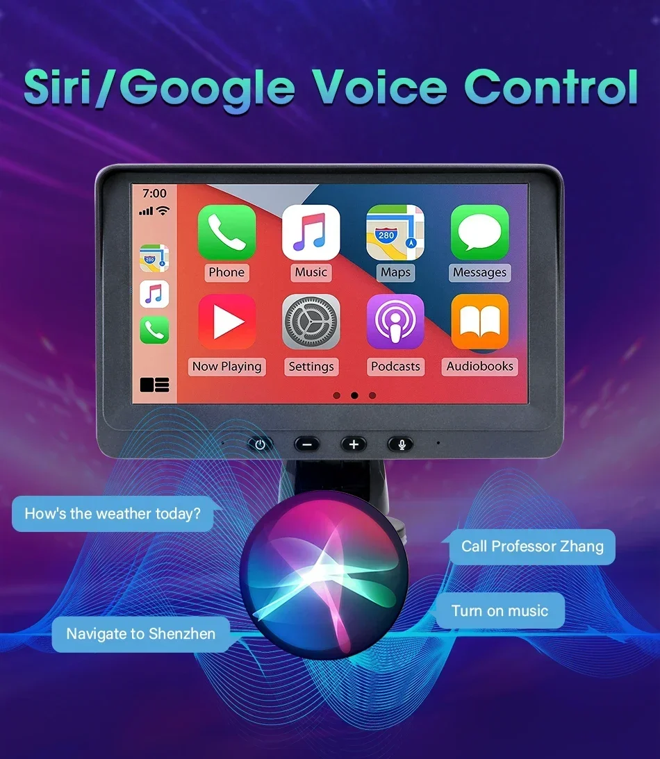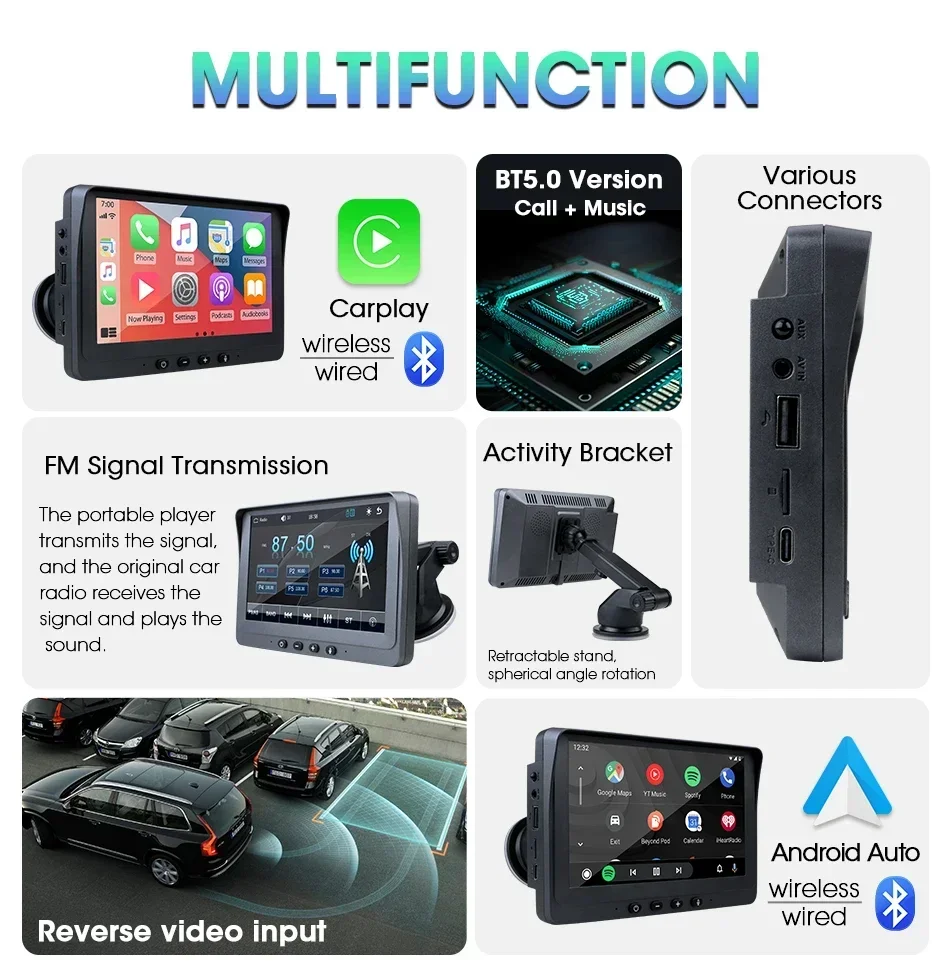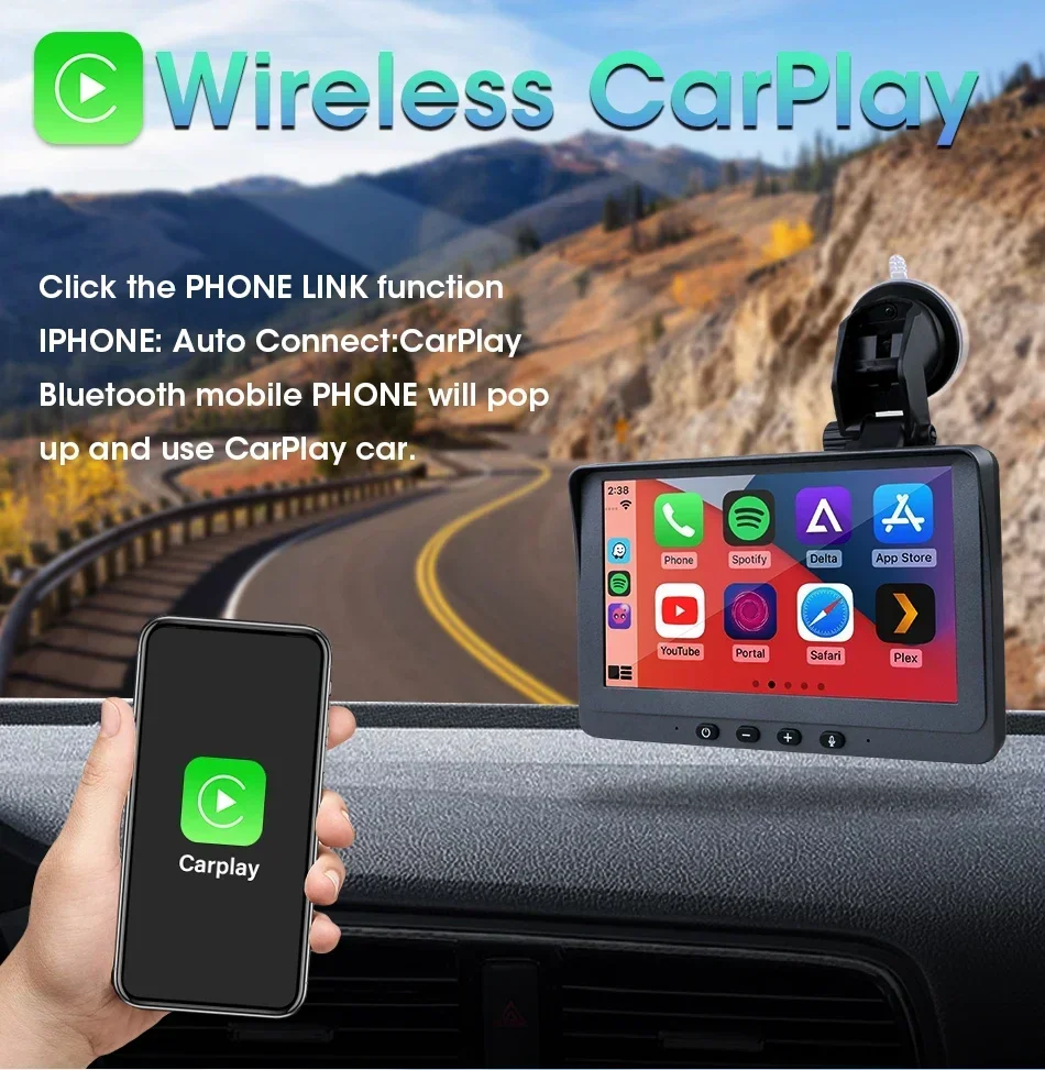 Portable 7 inch Multimedia Video Player Wireless Carplay Android Auto Touch Screen With USB AUX Dual Bluetoth Stereo Car Radio