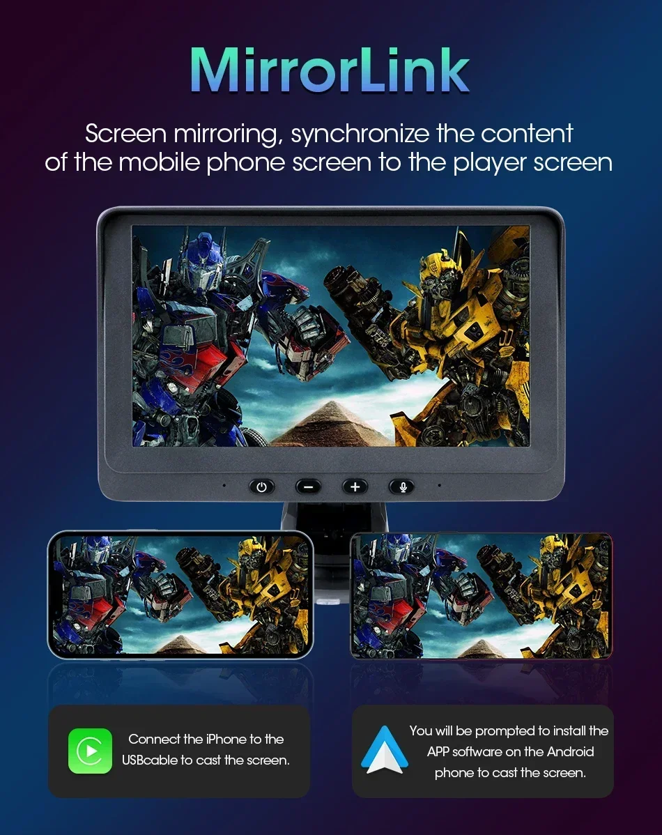 6: Support rear view camera function, which can display the rear image and make driving safer