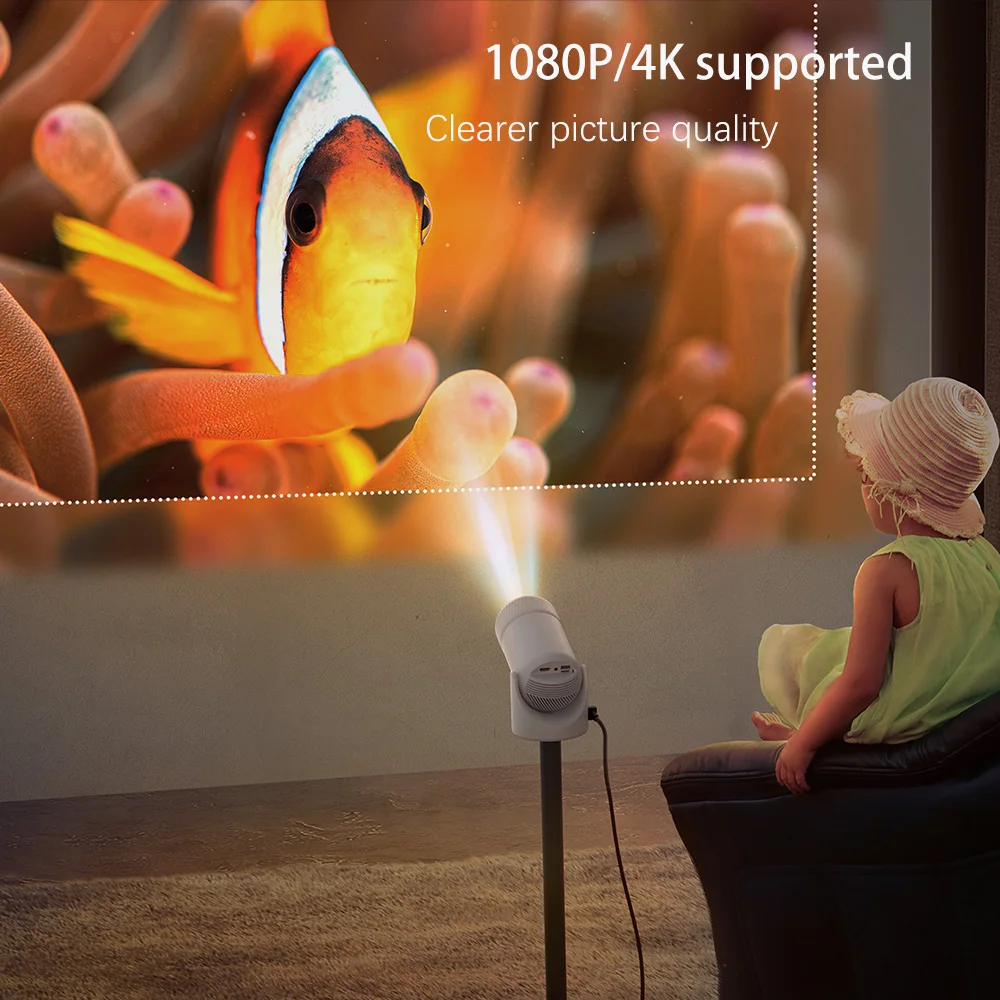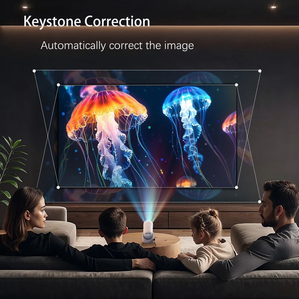Portable Android Projector,4K Home Cinema Android TV Player Outdoor Projector,Screen Mirror Video File Full Auto Calibration