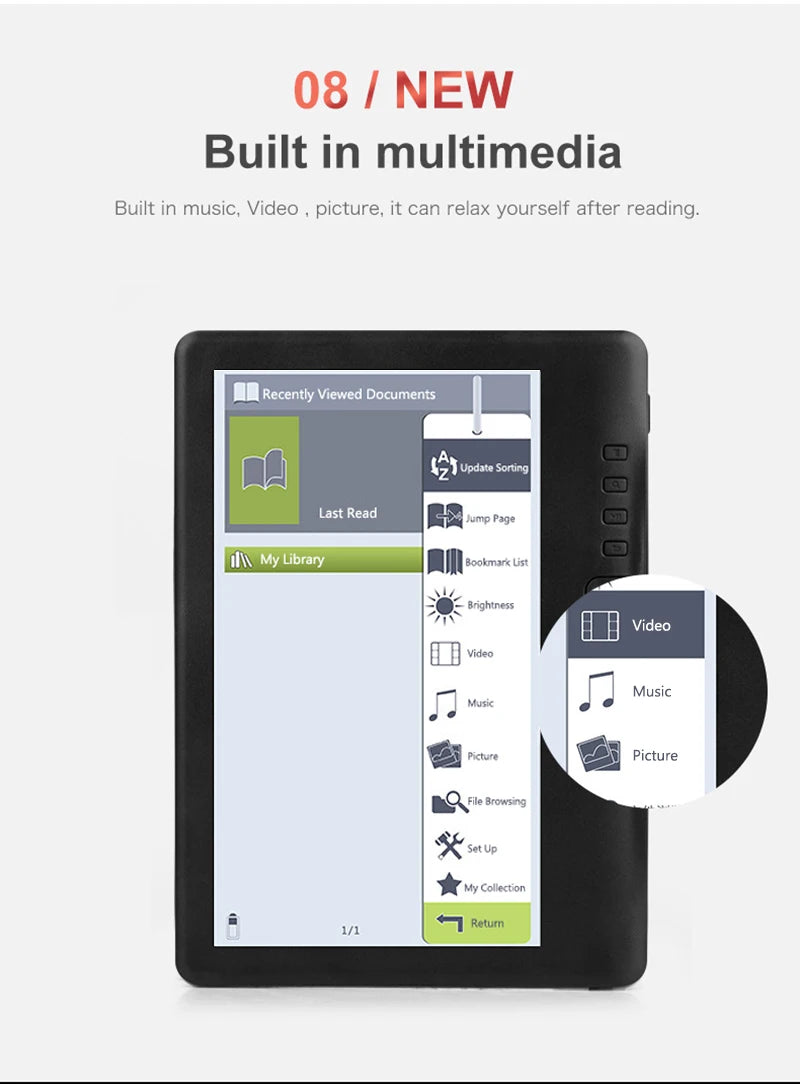 * Multiple format support: This e-reader supports 25 popular formats, including EPUB, PDF, and JPEG, eliminating the hassle of file conversion and providing easy access to a variety of books and documents.