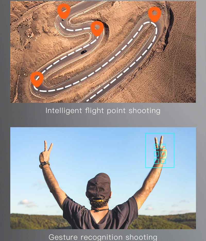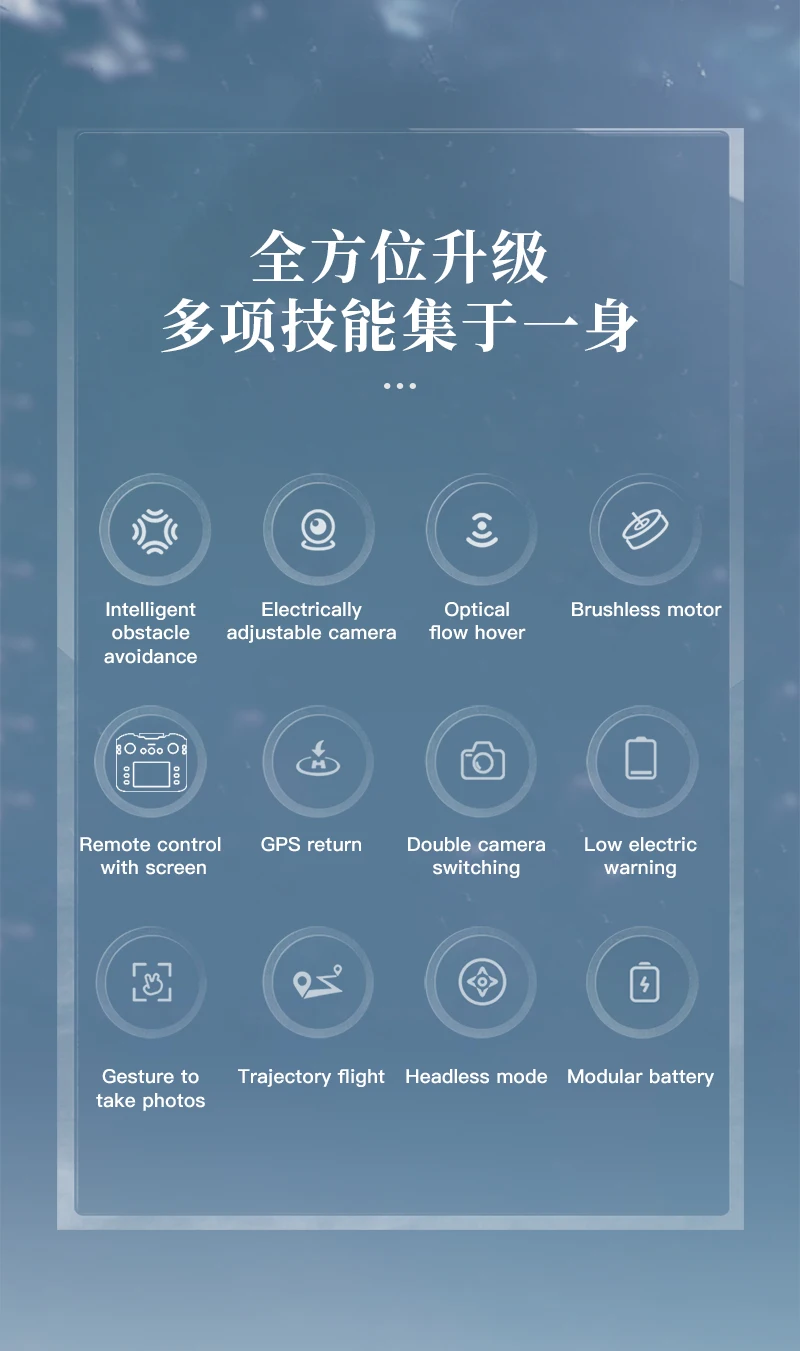 8. Hand gesture photography, optical flow positioning, brushless motor, ultra long endurance, obstacle avoidance head assembly, which can stop when encountering obstacles without colliding with them.