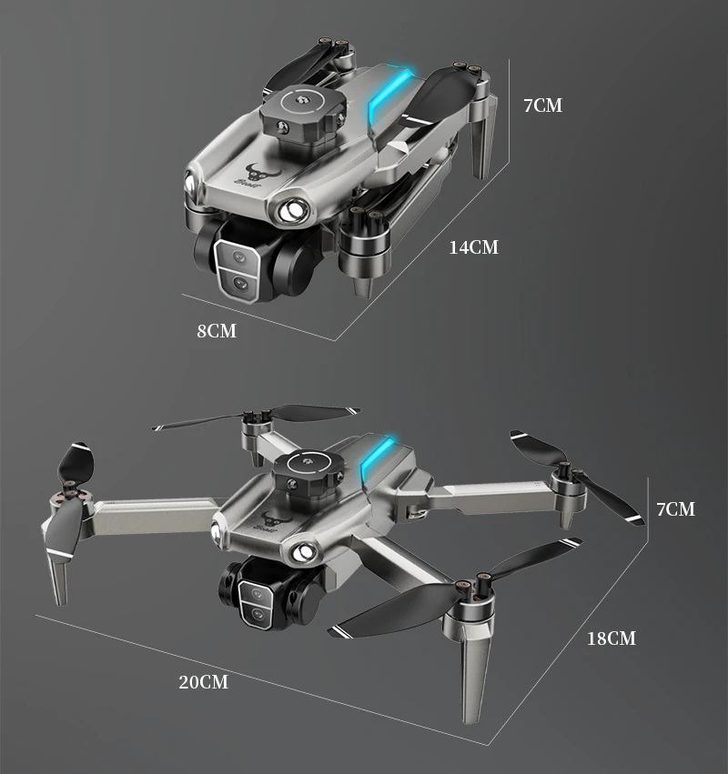 1. The front lens is placed with wide-angle 4K high-definition WIFI, the bottom high-definition lens with optical flow can switch the camera angle.