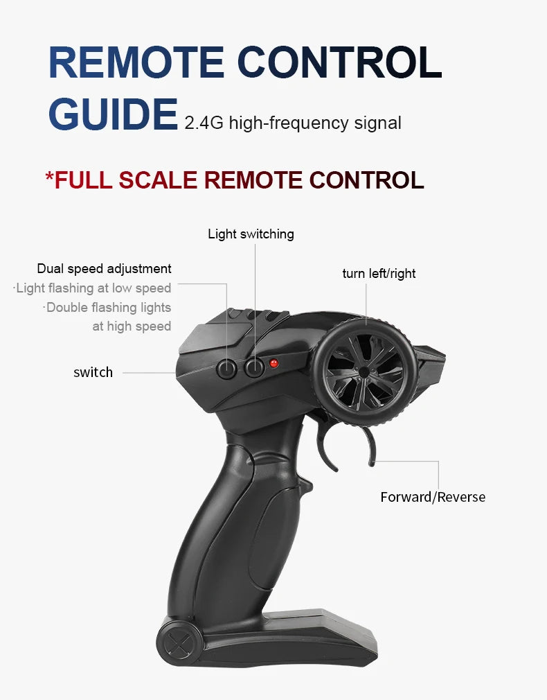 Rev up your adventures with the RC8 Off-Road Remote Control Car — the ultimate mini monster truck designed for thrill-seekers and hobby enthusiasts alike. Expertly crafted with a realistic scale model structure (24*15*11.5CM), this high-performance RC vehicle offers an authentic driving experience on diverse terrains.