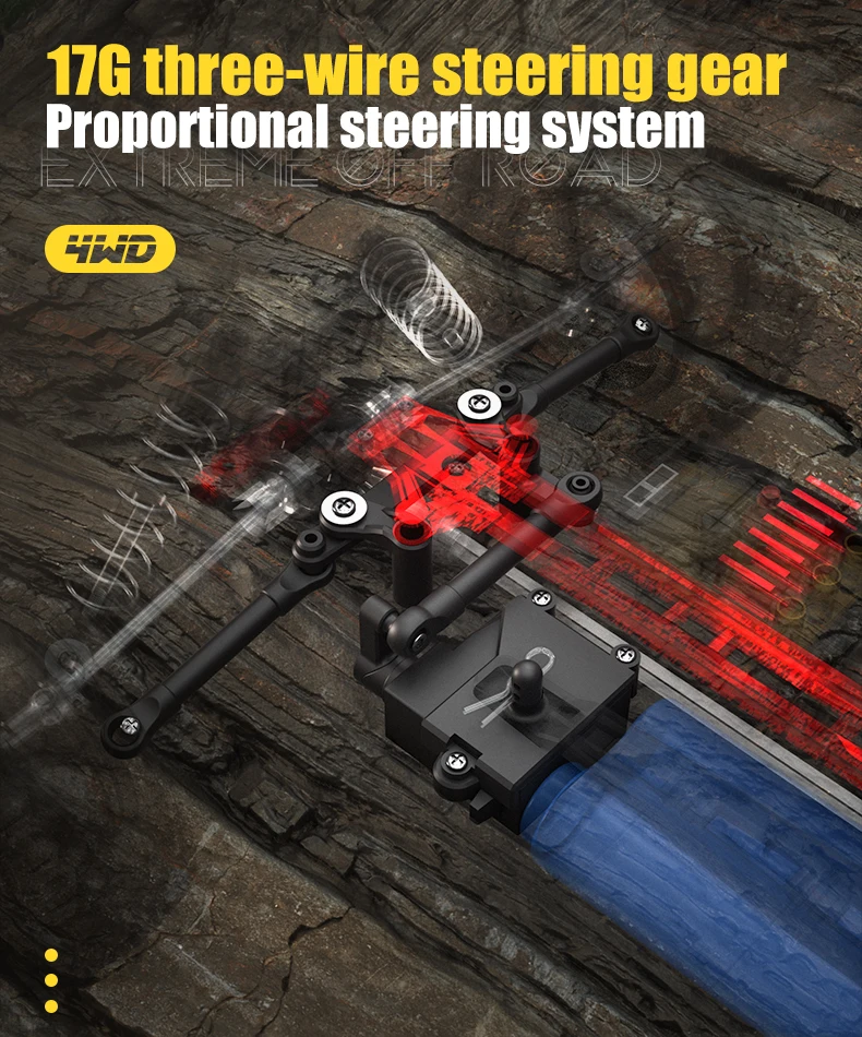 4, 2.4G full proportional synchronous remote control system. Full throttle/steering;