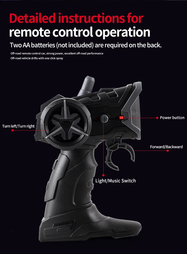 Remote control battery: 2*1.5#AA (not included)