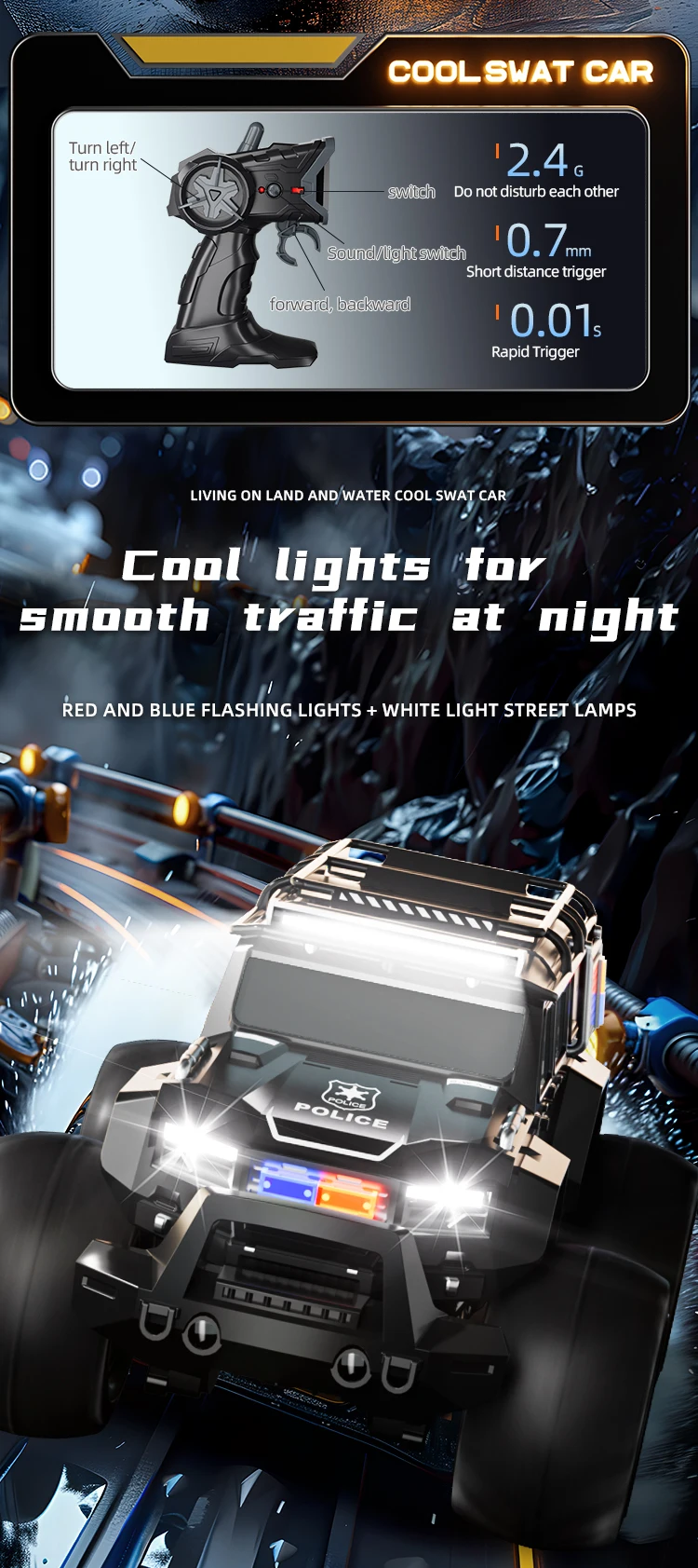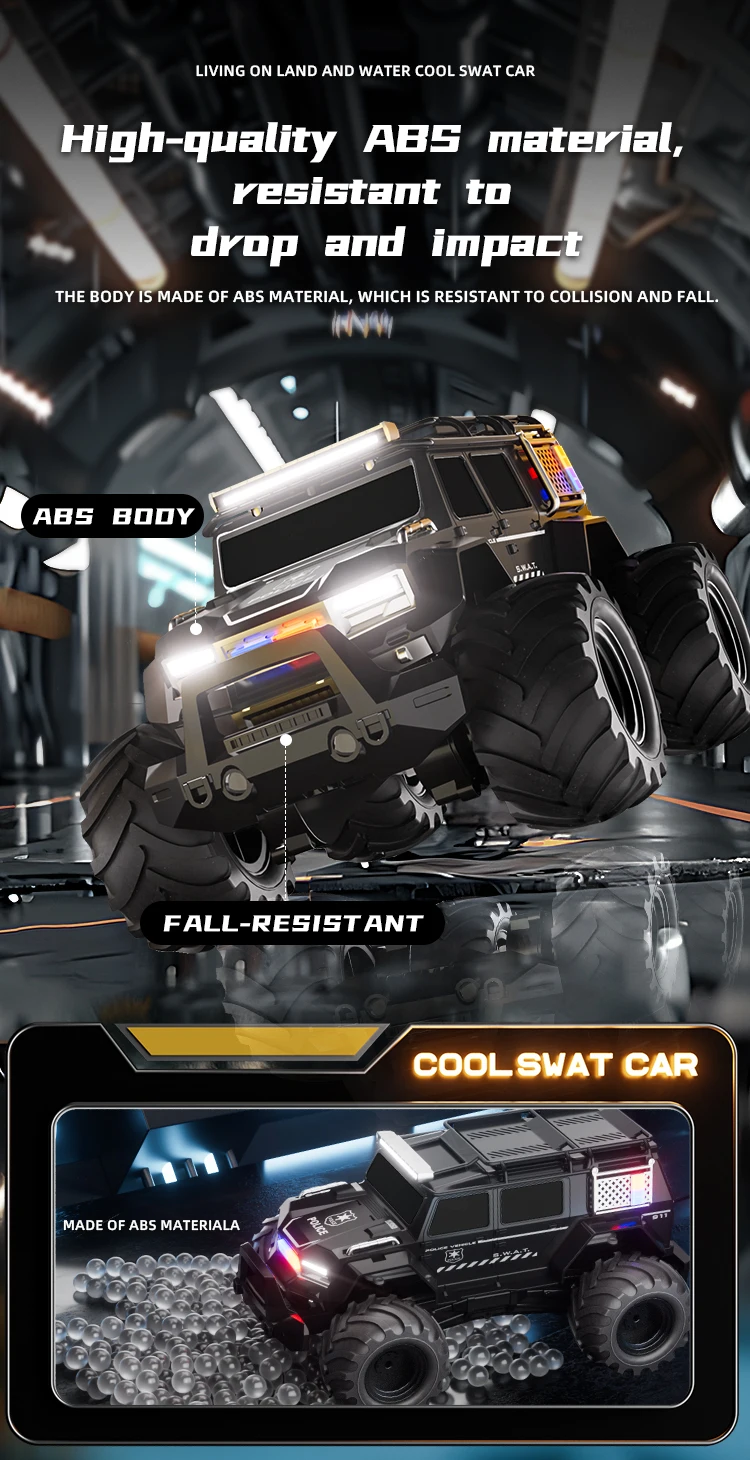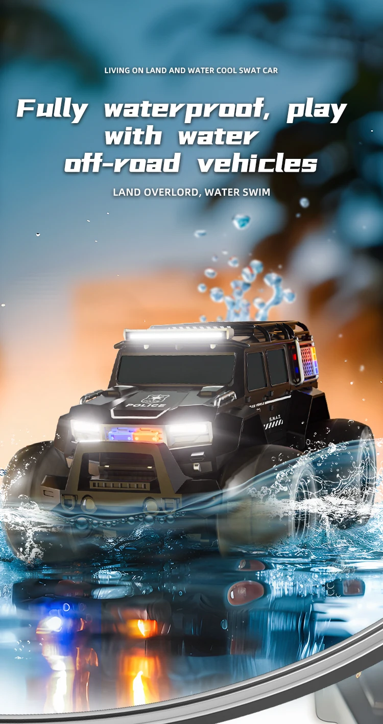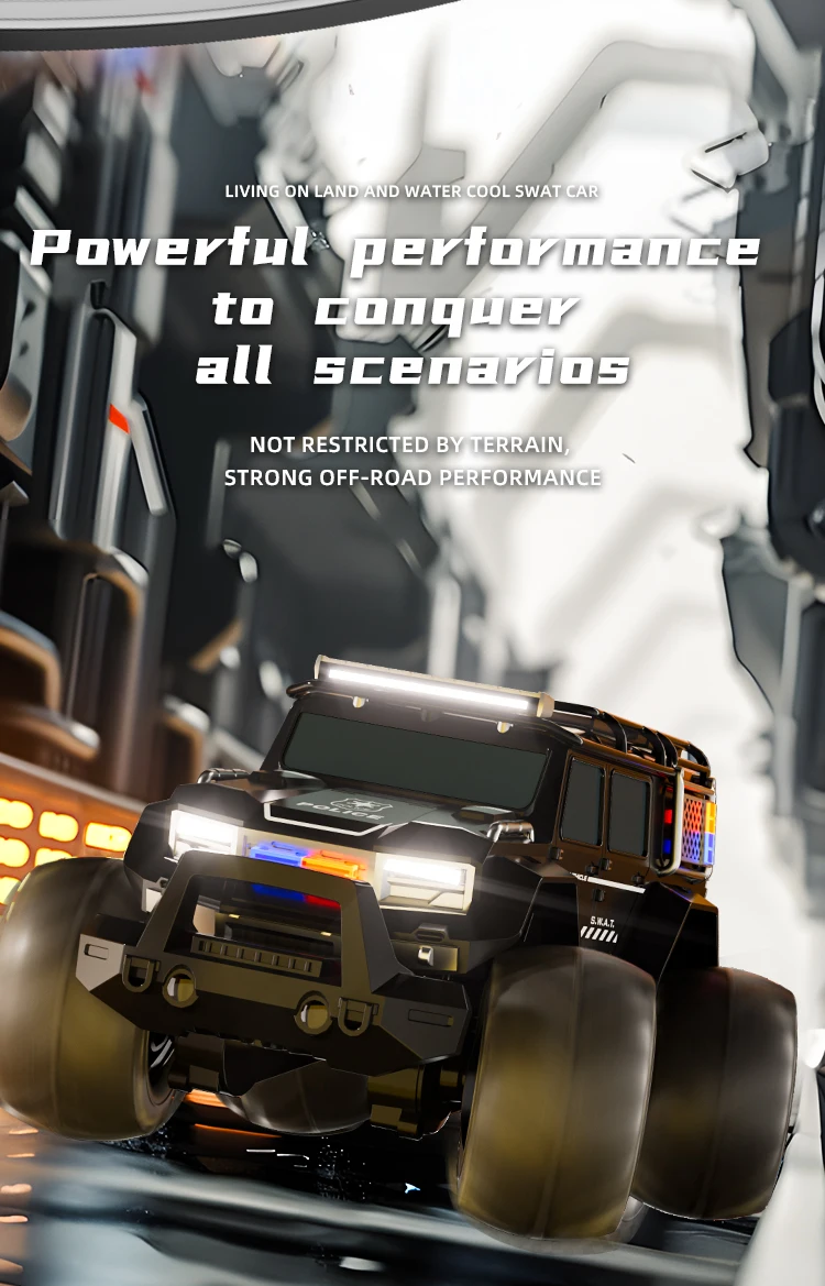Amphibious off-road vehicle appearance, cool lights, dynamic sound effects, suitable for indoor and outdoor play, more suitable for multi-venue control