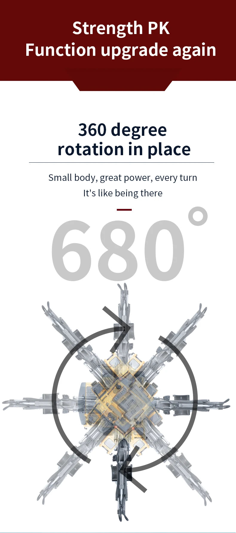 Forward, backward, turn right, left, dig, one-click demo, the console rotate 680°, and with music and light