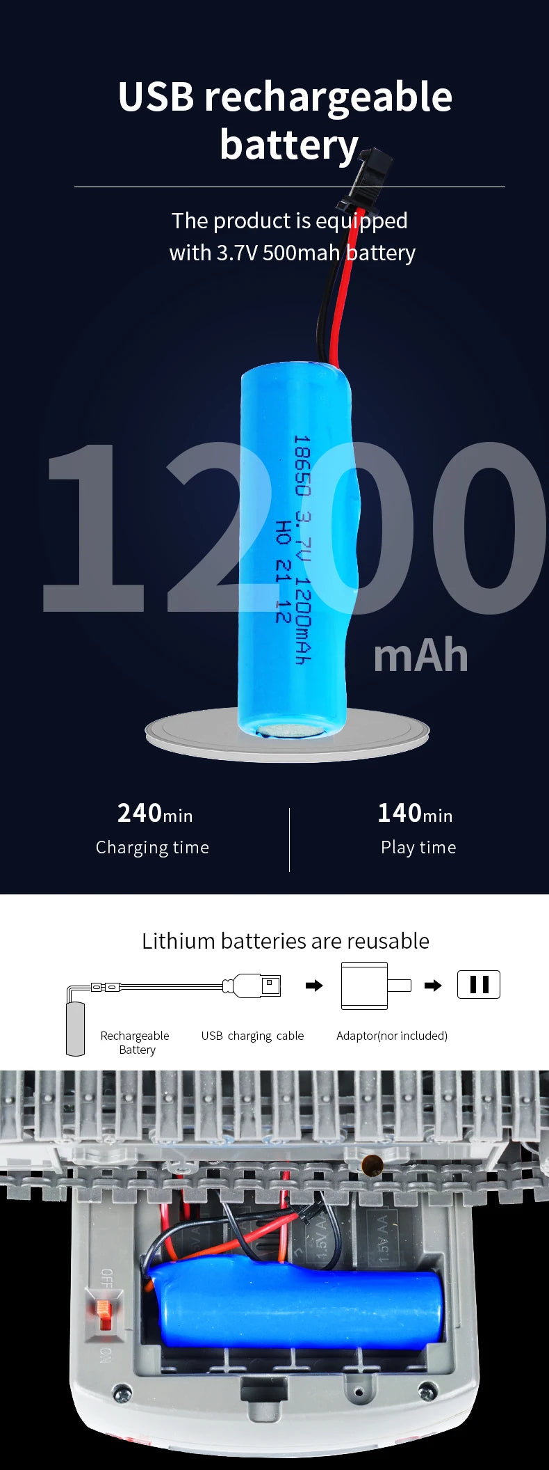 Body battery: 3.7V 1200MAH battery,