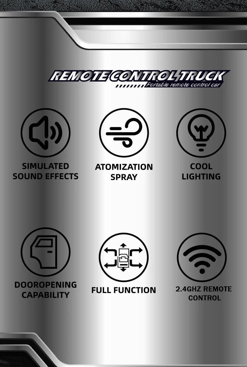 RC Truck 1:16 2.4GHZ RC Car Simulation Drift Climbing Truck With Spray and LED Lights RC Electric Truck Model Boy's Toys Gifts