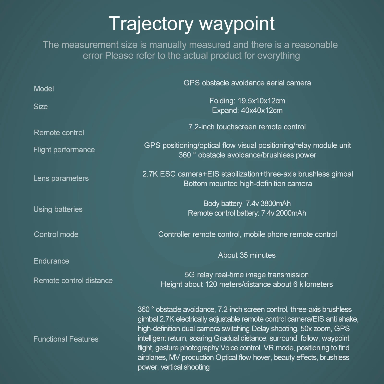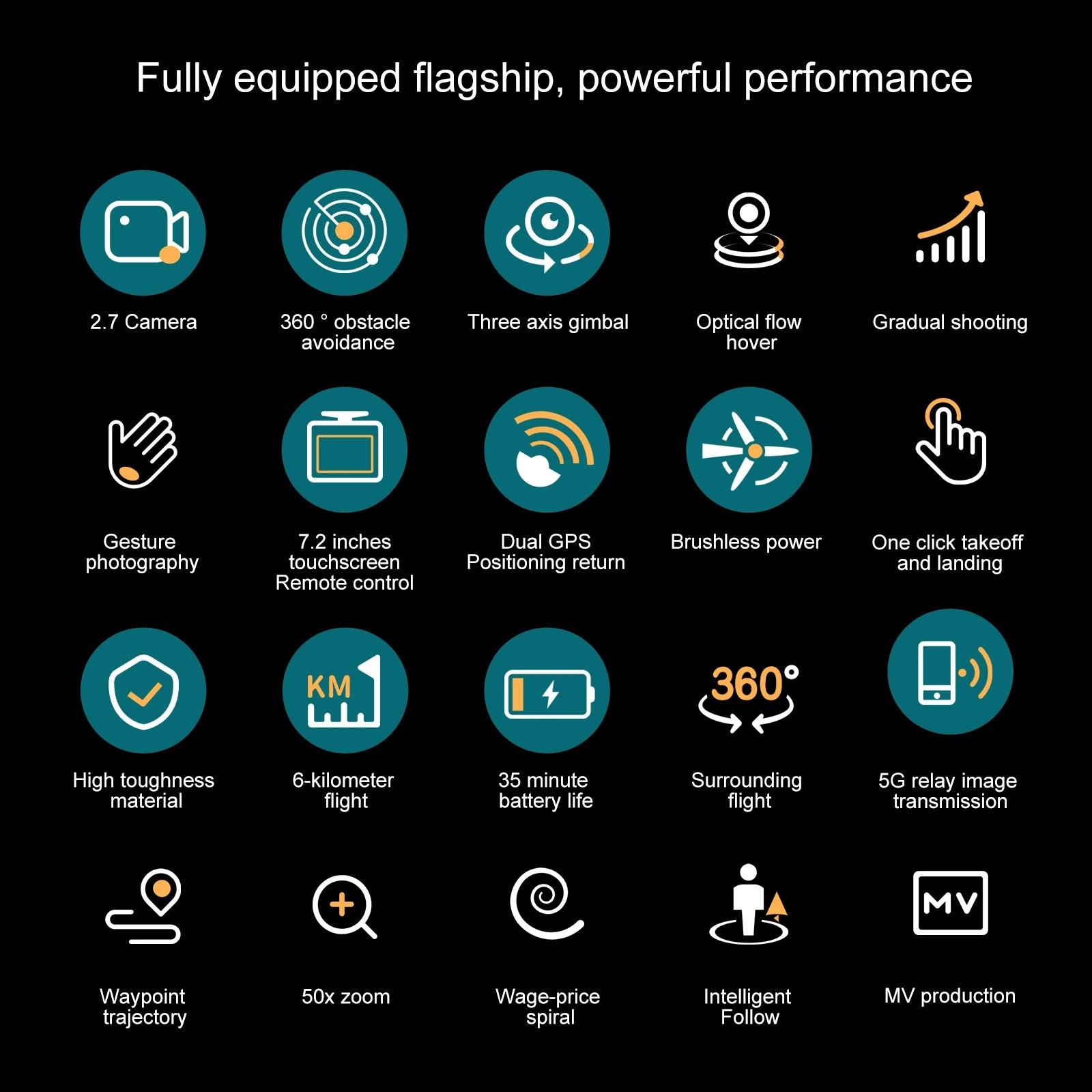 1. Advanced features: Built in high-definition dual 4K cameras, three-axis pan tilt, 5G relay brushless motor, capable of carrying 500g