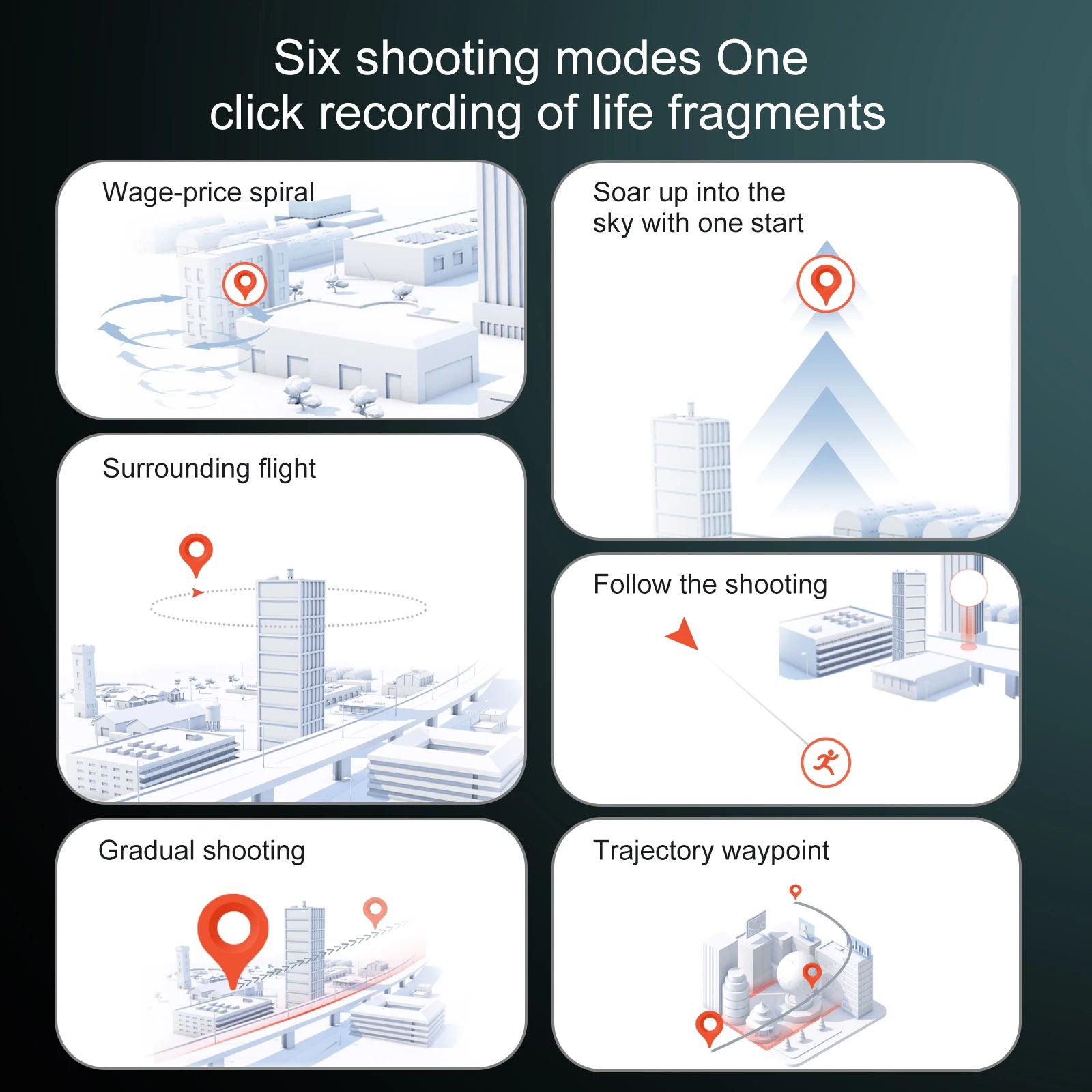 🔺 Connect WIFI system functions: taking photos, recording and real-time transmission, emergency stop, trajectory flying, one click surround, intelligent following, adding music, rotating the screen, displaying aircraft position