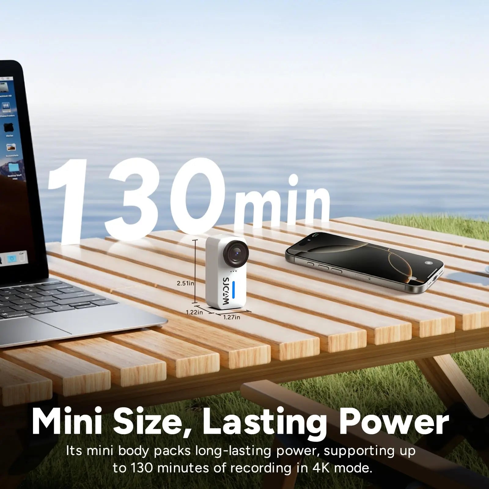 Long-Lasting Power: A robust 1100mAh battery delivers up to 180 minutes recording at 1080p, 120 mins at 2K, or 100 mins at stunning 4K. Supports recording while charging for endless shooting or epic time-lapses.